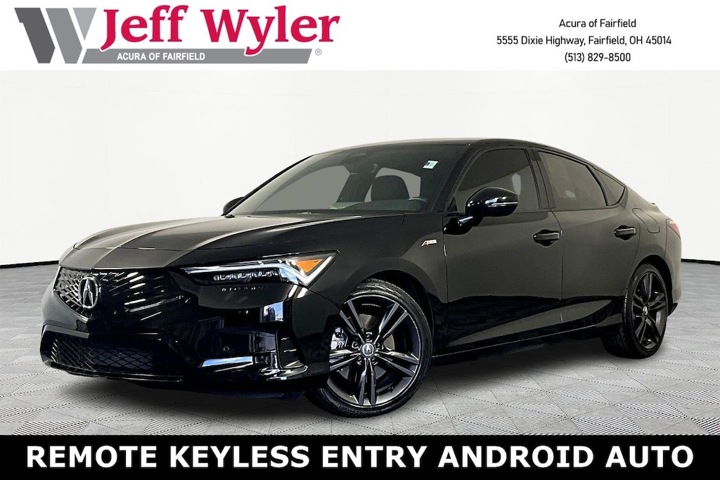 Jeff Wyler Acura of Fairfield is honored to offer this hardy, reliable 2023 Acura Integra A-Spec Tech Package in Black. Precision Certified Certified, 16 Speakers, 18" Alloy Wheels, 4-Wheel Disc Brakes, ABS brakes, Adaptive suspension, Air Conditioning, Alloy wheels, AM/FM radio: SiriusXM, Apple CarPlay/Android Auto, Auto High-beam Headlights, Auto-dimming Rear-View mirror, Automatic temperature control, Brake assist, Bumpers: body-color, Compass, Delay-off headlights, Driver door bin, Driver vanity mirror, Dual front impact airbags, Dual front side impact airbags, Electronic Stability Control, Emergency communication system: AcuraLink (subscription required), Four wheel independent suspension, Front anti-roll bar, Front Bucket Seats, Front Center Armrest, Front dual zone A/C, Front fog lights, Front reading lights, Fully automatic headlights, Heads-Up Display, Heated door mirrors, Heated Front Bucket Seats, Heated front seats, Illuminated entry, Knee airbag, Lane departure: Lane Keeping Assist System (LKAS) active, Leather Shift Knob, Low tire pressure warning, Memory seat, Occupant sensing airbag, Outside temperature display, Overhead airbag, Overhead console, Panic alarm, Passenger door bin, Passenger vanity mirror, Power door mirrors, Power driver seat, Power moonroof, Power passenger seat, Power steering, Power windows, Radio data system, Radio: ELS Studio 3D Premium Audio System, Rain sensing wipers, Rear anti-roll bar, Rear seat center armrest, Rear side impact airbag, Rear window defroster, Remote keyless entry, Security system, Speed control, Speed-sensing steering, Speed-Sensitive Wipers, Split folding rear seat, Spoiler, Steering wheel mounted audio controls, Suede-Trimmed Seating Surfaces w/Exclusive Stitch, Tachometer, Telescoping steering wheel, Tilt steering wheel, Traction control, Trip computer, Turn signal indicator mirrors, and Variably intermittent wipers ***ONLINE PRICE DOES NOT INCLUDE WYLER FAMILY FIRST PACKAGE*** Certified. Precision Certified Details: * Roadside Assistance * Powertrain Limited Warranty: 84 Month/100,000 Mile (whichever comes first) from original in-service date * 1st Scheduled Maintenance is Free, Complimentary 3-month AcuraLink trial, Complimentary 3-month SiriusXM Radio Service. Includes Trip Interruption, Rental Vehicle Reimbursement and Concierge Service * Transferable Warranty * Limited Warranty: 24 Month/100,000 Mile (whichever comes first) after new car warranty expires or from certified purchase date * 182 Point Inspection * Warranty Deductible: $0 * Vehicle HistoryCARFAX One-Owner. Clean CARFAX. Odometer is 11697 miles below market average!Proudly Serving: Cincinnati, Dayton, Columbus, Louisville, Lexington, Indianapolis, Hamilton, Florence, Alexandria, Beavercreek, Springdale, West Chester, Monroe, Fairfield, Kenwood, Newport and all of greater Cincinnati Ohio, Indiana, and Northern Kentucky.