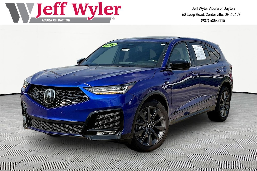 Jeff Wyler Acura of Dayton is pleased to offer this great 2025 Acura MDX A-Spec in B-621p. Precision Certified Certified, Ebony Leather, 19 Speakers, 3rd row seats: split-bench, 4-Wheel Disc Brakes, ABS brakes, Air Conditioning, Alloy wheels, Anti-whiplash front head restraints, Apple CarPlay/Android Auto, Audio memory, Auto High-beam Headlights, Auto tilt-away steering wheel, Auto-dimming Rear-View mirror, Automatic temperature control, Brake assist, Bumpers: body-color, Compass, Delay-off headlights, Driver door bin, Driver vanity mirror, Dual front impact airbags, Dual front side impact airbags, Electronic Stability Control, Emergency communication system: AcuraLink, Exterior Parking Camera Rear, Four wheel independent suspension, Front anti-roll bar, Front Bucket Seats, Front Center Armrest, Front dual zone A/C, Front fog lights, Front reading lights, Fully automatic headlights, Garage door transmitter: HomeLink, Heated door mirrors, Heated front seats, HVAC memory, Illuminated entry, Knee airbag, Lane departure: Lane Keeping Assist System (LKAS) active, Leather steering wheel, Low tire pressure warning, Memory seat, Navigation system: Google built-in (3-Years Unlimited Data Plan for In-Vehicle Apps), Occupant sensing airbag, Outside temperature display, Overhead airbag, Overhead console, Panic alarm, Passenger door bin, Passenger vanity mirror, Power door mirrors, Power driver seat, Power Liftgate, Power moonroof, Power passenger seat, Power steering, Power windows, Premium audio system: Acura/ELS Studio 3D, Radio data system, Radio: Bang & Olufsen Premium Audio System, Rain sensing wipers, Rear air conditioning, Rear anti-roll bar, Rear reading lights, Rear seat center armrest, Rear window defroster, Rear window wiper, Remote keyless entry, Security system, Speed control, Speed-sensing steering, Speed-Sensitive Wipers, Split folding rear seat, Spoiler, Sport steering wheel, Steering wheel memory, Steering wheel mounted audio controls, Tachometer, Telescoping steering wheel, Tilt steering wheel, Traction control, Trip computer, Turn signal indicator mirrors, Variably intermittent wipers, Ventilated front seats, and Wheels: 20" x 9J Aluminum Alloy Our PRE-OWNED vehicles are put through a rigorous 167- POINT QUALITY ASSURANCE INSPECTION along with an average amount of over $1,400.00 SPENT to recondition each vehicle so we can be sure to deliver you the highest quality vehicle like you deserve! ***ONLINE PRICE DOES NOT INCLUDE WYLER FAMILY FIRST PACKAGE*** CARFAX One-Owner. Clean CARFAX. Certified. Precision Certified Details: * 1st Scheduled Maintenance is Free, Complimentary 3-month AcuraLink trial, Complimentary 3-month SiriusXM Radio Service. Includes Trip Interruption, Rental Vehicle Reimbursement and Concierge Service * Transferable Warranty * Roadside Assistance * 182 Point Inspection * Warranty Deductible: $0 * Powertrain Limited Warranty: 84 Month/100,000 Mile (whichever comes first) from original in-service date * Limited Warranty: 24 Month/100,000 Mile (whichever comes first) after new car warranty expires or from certified purchase date * Vehicle History