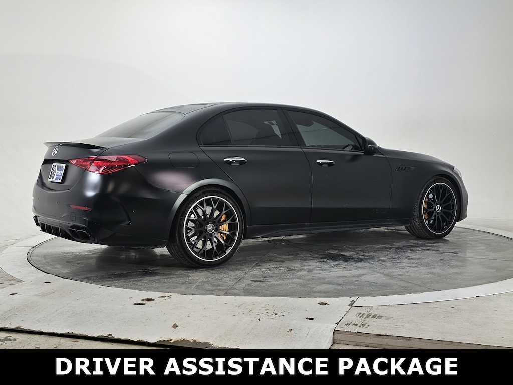 Black 2025 Mercedes-Benz C-Class C 63 S AMG® 4MATIC® 9-Speed Automatic 2.0L I4 Turbocharged 2.0L I4 Turbocharged, 4MATIC®, Active Lane Change Assist, Active Speed Limit Assist, AMG® Night Package, AMG® Performance Design Package, AMG® Track Pace, DISTRONIC PLUS® w/Steering & Stop & Go Assist, Driver Assistance Package, Heated Steering Wheel, Performance-Oriented Body Styling, PRE-SAFE® Impulse Side, PRE-SAFE® PLUS, Route-Based Speed Adaptation, Top Speed Delimiter to 174 MPH, Yellow Brake Calipers.