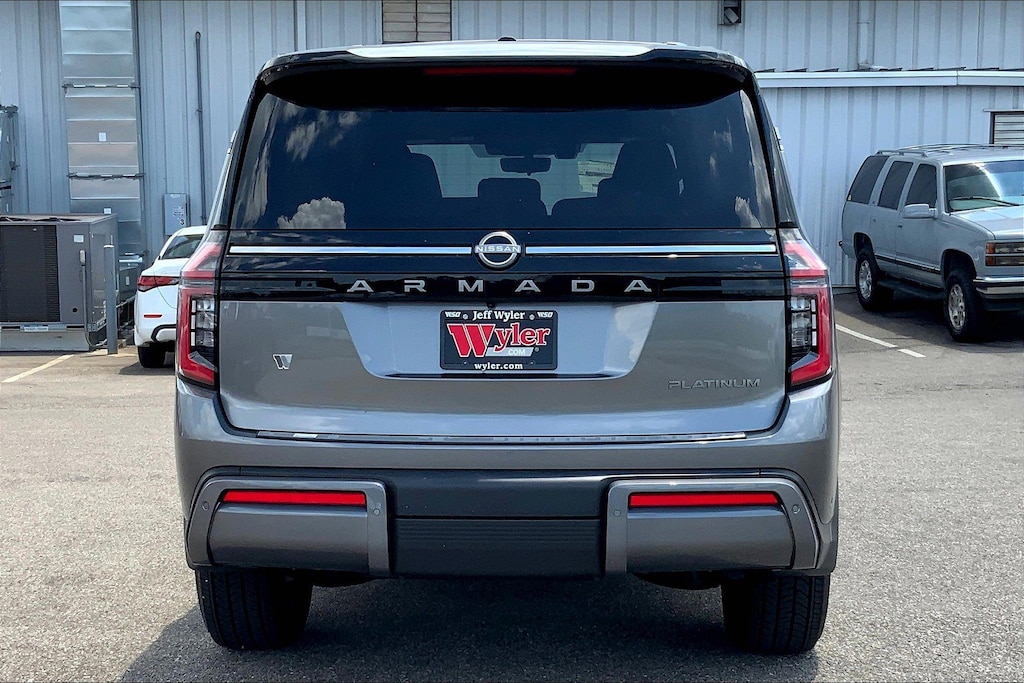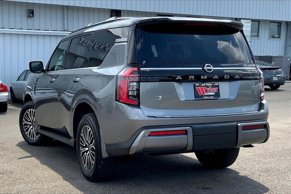 $11,000 off MSRP! Jeff Wyler Kings Nissan is delighted to offer this good-looking 2025 Nissan Armada Platinum in Gun Metallic/Super Black. Well equipped with: Convenience Package, 4WD, 12 Speakers, 2-Tone Roof, 20" Painted Alloy Wheels, 3rd row seats: split-bench, 4-Wheel Disc Brakes, ABS brakes, Air Conditioning, Alloy wheels, AM/FM radio: SiriusXM, Anti-whiplash front head restraints, Auto High-beam Headlights, Auto tilt-away steering wheel, Auto-dimming door mirrors, Auto-dimming Rear-View mirror, Auto-leveling suspension, Automatic temperature control, Brake assist, Bumpers: body-color, Carpeted Floor Mats - Captain Chairs, Center Front Spoiler, Climate Controlled Heated & Ventilated Front Seats, Delay-off headlights, Driver door bin, Driver vanity mirror, Dual front impact airbags, Dual front side impact airbags, Electronic Stability Control, Emergency communication system: NissanConnect Services, Four wheel independent suspension, Front anti-roll bar, Front Bucket Seats, Front Center Armrest, Front dual zone A/C, Front fog lights, Front reading lights, Fully automatic headlights, Garage door transmitter: myQ Connected Garage, Genuine wood dashboard insert, Heated door mirrors, Heated front seats, Heated rear seats, Heated steering wheel, HVAC memory, Illuminated entry, Illuminated Kick Plates, Knee airbag, Leather steering wheel, Low tire pressure warning, Memory seat, Navigation System, Occupant sensing airbag, Outside temperature display, Overhead airbag, Overhead console, Panic alarm, Passenger door bin, Passenger vanity mirror, Power door mirrors, Power driver seat, Power Liftgate, Power moonroof, Power passenger seat, Power steering, Power windows, Quilted Leather Seat Trim, Radio: NissanConnect w/SiriusXM 360L, Rain sensing wipers, Rear air conditioning, Rear anti-roll bar, Rear Bumper Protector, Rear reading lights, Rear window defroster, Rear window wiper, Reclining 3rd row seat, Remote keyless entry, Roof Rail Cross Bars, Security system, Speed control, Speed-sensing steering, Speed-Sensitive Wipers, Splash Guards, Split folding rear seat, Spoiler, Steering wheel memory, Steering wheel mounted audio controls, Tachometer, Telescoping steering wheel, Tilt steering wheel, Traction control, Trip computer, Turn signal indicator mirrors, Variably intermittent wipers, Ventilated front seats, and Voltmeter.Wyler Family First Package Includes: NanoCure Appearance Protection: Exterior & Interior Chemical Sealant Applied to Protect Against Environmental Hazards (7 Year Warranty Coverage). Pulse- Rear end Collision Avoidance System Theft Deterrent Strategy gives you 5 Years of Coverage against vehicle Theft, Offering up to a $5,000 benefit. Used vehicles 10 years of age or newer with less than 100,000 miles are eligible for the Wyler Assurance Program, but eligible vehicles must pass our reconditioning process and multi-point inspection. Provided the vehicle passes inspection, vehicles will be eligible for the 6 month/6,000 mile limited warranty. The 6 month/6,000 mile limited warranty is NOT available on AS-IS vehicles, wholesale vehicles, lease buyback/pass-thru vehicles or un-inspected vehicles. Note that this program can also apply to vehicles where the remaining factory coverage is less than 6 months or 6,000 miles. Please check the Federal Trade Commission (FTC) Buyers guide on the vehicle for full details as to whether or not warranty coverage may apply. Contact Dealer for additional details. The Wyler Assurance 6 month/6,000 Mile limited warranty ends 6 months from the date of the Retail Purchase Agreement (BUYERS ORDER) or when the vehicle's odometer registers 6,000 additional miles to the mileage listed on the BUYERS ORDER, whichever comes first. Your Deductible - The warranty holder on your contract pays the first $100 of each covered repair. Price includes: $1500 - Nissan MY25 Armada Bonus Cash. Exp. 01/05/2026
