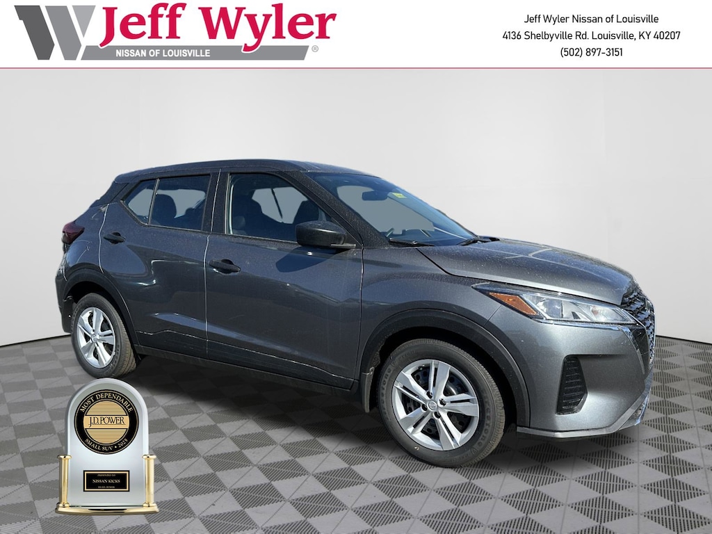 Jeff Wyler Nissan of Louisville is delighted to offer this good-looking 2025 Nissan Kicks Play S in Gun Metallic. Well equipped with: 6 Speakers, ABS brakes, Air Conditioning, AM/FM radio, Auto High-beam Headlights, Blind Spot Warning, Brake assist, Driver door bin, Driver vanity mirror, Driver's Seat Mounted Armrest, Dual front impact airbags, Dual front side impact airbags, Electronic Stability Control, Front anti-roll bar, Front Bucket Seats, Front reading lights, Front wheel independent suspension, Fully automatic headlights, Illuminated entry, Knee airbag, Low tire pressure warning, Occupant sensing airbag, Outside temperature display, Overhead airbag, Panic alarm, Passenger door bin, Passenger vanity mirror, Power door mirrors, Power steering, Power windows, Radio data system, Rear Parking Sensors, Rear reading lights, Rear side impact airbag, Rear window defroster, Rear window wiper, Remote keyless entry, Speed control, Split folding rear seat, Sport steering wheel, Steering wheel mounted audio controls, Tachometer, Telescoping steering wheel, Tilt steering wheel, Traction control, Trip computer, and Variably intermittent wipers.2025 Nissan Kicks Play S Gun Metallic Wyler Family First Package Includes: NanoCure Appearance Protection: Exterior & Interior Chemical Sealant Applied to Protect Against Environmental Hazards (7 Year Warranty Coverage). Pulse- Rear end Collision Avoidance System Theft Deterrent Strategy gives you 5 Years of Coverage against vehicle Theft, Offering up to a $5,000 benefit.