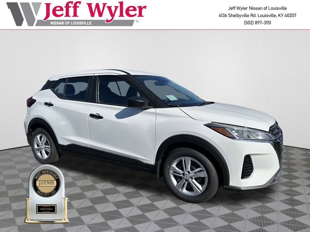 Jeff Wyler Nissan of Louisville is honored to offer this superb 2025 Nissan Kicks Play S in Fresh Powder. Well equipped with: 6 Speakers, ABS brakes, Air Conditioning, AM/FM radio, Auto High-beam Headlights, Blind Spot Warning, Brake assist, Driver door bin, Driver vanity mirror, Driver's Seat Mounted Armrest, Dual front impact airbags, Dual front side impact airbags, Electronic Stability Control, Front anti-roll bar, Front Bucket Seats, Front reading lights, Front wheel independent suspension, Fully automatic headlights, Illuminated entry, Knee airbag, Low tire pressure warning, Occupant sensing airbag, Outside temperature display, Overhead airbag, Panic alarm, Passenger door bin, Passenger vanity mirror, Power door mirrors, Power steering, Power windows, Radio data system, Rear Parking Sensors, Rear reading lights, Rear side impact airbag, Rear window defroster, Rear window wiper, Remote keyless entry, Speed control, Split folding rear seat, Sport steering wheel, Steering wheel mounted audio controls, Tachometer, Telescoping steering wheel, Tilt steering wheel, Traction control, Trip computer, and Variably intermittent wipers.2025 Nissan Kicks Play S Fresh Powder Wyler Family First Package Includes: NanoCure Appearance Protection: Exterior & Interior Chemical Sealant Applied to Protect Against Environmental Hazards (7 Year Warranty Coverage). Pulse- Rear end Collision Avoidance System Theft Deterrent Strategy gives you 5 Years of Coverage against vehicle Theft, Offering up to a $5,000 benefit.