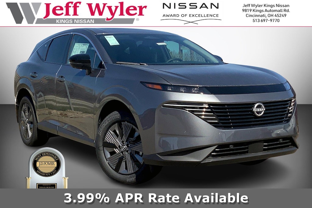 $11,192 off MSRP! Jeff Wyler Kings Nissan is very proud to offer this good-looking 2025 Nissan Murano SL in Gun Metallic. Well equipped with: 9-Speed Automatic, AWD, 10 Speakers, 20" Alloy Wheels, 4-Wheel Disc Brakes, ABS brakes, Air Conditioning, Alloy wheels, AM/FM radio: SiriusXM w/360L, Auto High-beam Headlights, Auto-dimming Rear-View mirror, Automatic temperature control, Brake assist, Bumpers: body-color, Carpeted Floor & Cargo Mats, Child-Seat-Sensing Airbag, Compass, Delay-off headlights, Driver door bin, Driver vanity mirror, Dual front impact airbags, Dual front side impact airbags, Electronic Stability Control, Emergency communication system: NissanConnect Services, Four wheel independent suspension, Front anti-roll bar, Front Bucket Seats, Front Center Armrest, Front dual zone A/C, Front reading lights, Fully automatic headlights, Garage door transmitter: myQ Connected Garage, Grained Splash Guards, Heated door mirrors, Heated Front Bucket Seats, Heated front seats, Heated steering wheel, Illuminated Cargo Scuff Plate, Illuminated entry, Knee airbag, Low tire pressure warning, Memory seat, Navigation system: NissanConnect with Navigation and Services, Occupant sensing airbag, Outside temperature display, Overhead airbag, Overhead console, Panic alarm, Passenger door bin, Passenger vanity mirror, Power door mirrors, Power driver seat, Power Liftgate, Power moonroof: Panoramic, Power passenger seat, Power steering, Power windows, PVC (Leatherette) Seat Trim, Radio data system, Radio: NissanConnect w/Hybrid Radio, Rear anti-roll bar, Rear reading lights, Rear seat center armrest, Rear side impact airbag, Rear window defroster, Rear window wiper, Remote keyless entry, Security system, Speed control, Speed-Sensitive Wipers, Split folding rear seat, Spoiler, Steering wheel mounted audio controls, Tachometer, Telescoping steering wheel, Tilt steering wheel, Traction control, Trip computer, Turn signal indicator mirrors, Variably intermittent wipers, and Wireless Apple CarPlay/Wireless Android Auto. 21/27 City/Highway MPGWyler Family First Package Includes: NanoCure Appearance Protection: Exterior & Interior Chemical Sealant Applied to Protect Against Environmental Hazards (7 Year Warranty Coverage). Pulse- Rear end Collision Avoidance System Theft Deterrent Strategy gives you 5 Years of Coverage against vehicle Theft, Offering up to a $5,000 benefit. Used vehicles 10 years of age or newer with less than 100,000 miles are eligible for the Wyler Assurance Program, but eligible vehicles must pass our reconditioning process and multi-point inspection. Provided the vehicle passes inspection, vehicles will be eligible for the 6 month/6,000 mile limited warranty. The 6 month/6,000 mile limited warranty is NOT available on AS-IS vehicles, wholesale vehicles, lease buyback/pass-thru vehicles or un-inspected vehicles. Note that this program can also apply to vehicles where the remaining factory coverage is less than 6 months or 6,000 miles. Please check the Federal Trade Commission (FTC) Buyers guide on the vehicle for full details as to whether or not warranty coverage may apply. Contact Dealer for additional details. The Wyler Assurance 6 month/6,000 Mile limited warranty ends 6 months from the date of the Retail Purchase Agreement (BUYERS ORDER) or when the vehicle's odometer registers 6,000 additional miles to the mileage listed on the BUYERS ORDER, whichever comes first. Your Deductible - The warranty holder on your contract pays the first $100 of each covered repair. Price includes: $5000 - Nissan Customer Cash. Exp. 01/05/2026