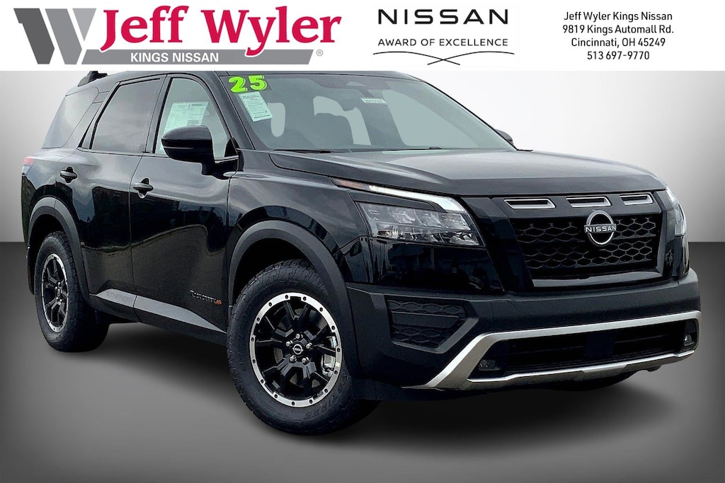 $8,633 off MSRP! Jeff Wyler Kings Nissan is honored to offer this attractive-looking 2025 Nissan Pathfinder Rock Creek in Super Black. Well equipped with: 4WD, 3rd row seats: bench, 4-Wheel Disc Brakes, 6 Speakers, ABS brakes, Air Conditioning, Alloy wheels, AM/FM radio: SiriusXM, Auto High-beam Headlights, Automatic temperature control, Brake assist, Delay-off headlights, Driver door bin, Driver vanity mirror, Dual front impact airbags, Dual front side impact airbags, Electronic Stability Control, Emergency communication system, Four wheel independent suspension, Front anti-roll bar, Front Bucket Seats, Front Center Armrest, Front dual zone A/C, Front fog lights, Front reading lights, Fully automatic headlights, Heated door mirrors, Heated Front Bucket Seats, Heated front seats, Illuminated entry, Knee airbag, Leather steering wheel, Leatherette-Appointed Seating Surfaces, Low tire pressure warning, NissanConnect featuring Apple CarPlay and Android Auto, Occupant sensing airbag, Outside temperature display, Overhead airbag, Overhead console, Panic alarm, Passenger door bin, Passenger vanity mirror, Power door mirrors, Power driver seat, Power Liftgate, Power steering, Power windows, Radio data system, Radio: AM/FM Audio System w/NissanConnect, Rear air conditioning, Rear anti-roll bar, Rear Parking Sensors, Rear reading lights, Rear side impact airbag, Rear window defroster, Rear window wiper, Reclining 3rd row seat, Remote keyless entry, Rock Creek AS Floor Liners & Cargo Area Protector, Rock Creek Roof Rack, Roof rack, Security system, Speed control, Speed-sensing steering, Split folding rear seat, Spoiler, Steering wheel mounted audio controls, Tachometer, Telescoping steering wheel, Tilt steering wheel, Traction control, Trip computer, Turn signal indicator mirrors, Variably intermittent wipers, and Wheels: 18" x 8J Machined Alloy w/Black Finish.Wyler Family First Package Includes: NanoCure Appearance Protection: Exterior & Interior Chemical Sealant Applied to Protect Against Environmental Hazards (7 Year Warranty Coverage). Pulse- Rear end Collision Avoidance System Theft Deterrent Strategy gives you 5 Years of Coverage against vehicle Theft, Offering up to a $5,000 benefit. Used vehicles 10 years of age or newer with less than 100,000 miles are eligible for the Wyler Assurance Program, but eligible vehicles must pass our reconditioning process and multi-point inspection. Provided the vehicle passes inspection, vehicles will be eligible for the 6 month/6,000 mile limited warranty. The 6 month/6,000 mile limited warranty is NOT available on AS-IS vehicles, wholesale vehicles, lease buyback/pass-thru vehicles or un-inspected vehicles. Note that this program can also apply to vehicles where the remaining factory coverage is less than 6 months or 6,000 miles. Please check the Federal Trade Commission (FTC) Buyers guide on the vehicle for full details as to whether or not warranty coverage may apply. Contact Dealer for additional details. The Wyler Assurance 6 month/6,000 Mile limited warranty ends 6 months from the date of the Retail Purchase Agreement (BUYERS ORDER) or when the vehicle's odometer registers 6,000 additional miles to the mileage listed on the BUYERS ORDER, whichever comes first. Your Deductible - The warranty holder on your contract pays the first $100 of each covered repair. Price includes: $5000 - Nissan Customer Cash. Exp. 11/03/2025