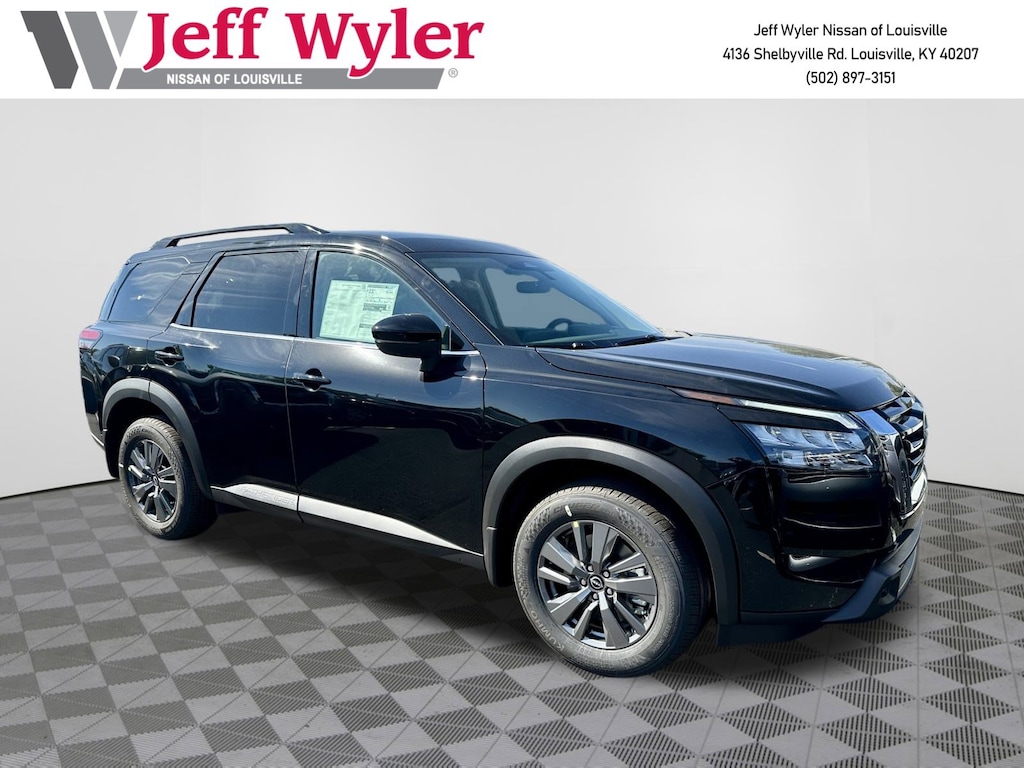 Jeff Wyler Nissan of Louisville is delighted to offer this wonderful-looking 2025 Nissan Pathfinder SV in Super Black. Well equipped with: Cargo Package (Cargo Area Protector, Cargo Net, and First Aid), 4WD, 3rd row seats: bench, 4-Wheel Disc Brakes, 6 Speakers, ABS brakes, Air Conditioning, Alloy wheels, AM/FM radio: SiriusXM, Auto High-beam Headlights, Automatic temperature control, Bench Seat Carpeted Floor Mats (Set of 4), Brake assist, Bumpers: body-color, Cloth Seating Surfaces, Delay-off headlights, Driver door bin, Driver vanity mirror, Dual front impact airbags, Dual front side impact airbags, Electronic Stability Control, Emergency communication system, Four wheel independent suspension, Front anti-roll bar, Front Bucket Seats, Front Center Armrest, Front dual zone A/C, Front reading lights, Fully automatic headlights, Heated door mirrors, Heated Front Bucket Seats, Heated front seats, Illuminated entry, Knee airbag, Leather steering wheel, Low tire pressure warning, Nissan USB Charging Cable Set, NissanConnect featuring Apple CarPlay and Android Auto, Occupant sensing airbag, Outside temperature display, Overhead airbag, Overhead console, Panic alarm, Passenger door bin, Passenger vanity mirror, Power door mirrors, Power driver seat, Power Liftgate, Power steering, Power windows, Radio data system, Radio: AM/FM Audio System w/NissanConnect, Rear air conditioning, Rear anti-roll bar, Rear Parking Sensors, Rear reading lights, Rear seat center armrest, Rear side impact airbag, Rear window defroster, Rear window wiper, Reclining 3rd row seat, Remote keyless entry, Security system, Speed control, Speed-sensing steering, Split folding rear seat, Spoiler, Steering wheel mounted audio controls, Tachometer, Telescoping steering wheel, Tilt steering wheel, Traction control, Trip computer, Turn signal indicator mirrors, Variably intermittent wipers, and Wheels: 18" x 8J Painted Alloy.2025 Nissan Pathfinder SV Super Black Wyler Family First Package Includes: NanoCure Appearance Protection: Exterior & Interior Chemical Sealant Applied to Protect Against Environmental Hazards (7 Year Warranty Coverage). Pulse- Rear end Collision Avoidance System Theft Deterrent Strategy gives you 5 Years of Coverage against vehicle Theft, Offering up to a $5,000 benefit. 4WD. Customer's May Not Qualify for All Rebates. Prices Do Not Include Tax, License. $5000 - Nissan Customer Cash. Exp. 11/03/2025