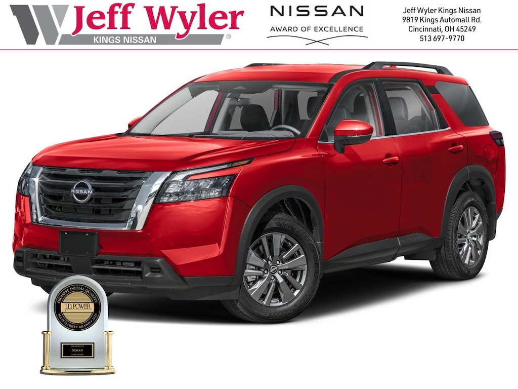$9,365 off MSRP! Jeff Wyler Kings Nissan is pumped up to offer this terrific-looking 2025 Nissan Pathfinder SV in Super Black. Well equipped with: Cargo Package (Cargo Area Protector, Cargo Net, and First Aid), 4WD, 3rd row seats: bench, 4-Wheel Disc Brakes, 6 Speakers, ABS brakes, Air Conditioning, Alloy wheels, AM/FM radio: SiriusXM, Auto High-beam Headlights, Automatic temperature control, Bench Seat Carpeted Floor Mats (set of 4), Brake assist, Bumpers: body-color, Cloth Seating Surfaces, Cross Bars, Delay-off headlights, Driver door bin, Driver vanity mirror, Dual front impact airbags, Dual front side impact airbags, Electronic Stability Control, Emergency communication system, Four wheel independent suspension, Front anti-roll bar, Front Bucket Seats, Front Center Armrest, Front dual zone A/C, Front reading lights, Fully automatic headlights, Heated door mirrors, Heated Front Bucket Seats, Heated front seats, Illuminated entry, Knee airbag, Leather steering wheel, Low tire pressure warning, NissanConnect featuring Apple CarPlay and Android Auto, Occupant sensing airbag, Outside temperature display, Overhead airbag, Overhead console, Panic alarm, Passenger door bin, Passenger vanity mirror, Power door mirrors, Power driver seat, Power Liftgate, Power steering, Power windows, Radio data system, Radio: AM/FM Audio System with NissanConnect, Rear air conditioning, Rear anti-roll bar, Rear Parking Sensors, Rear reading lights, Rear seat center armrest, Rear side impact airbag, Rear window defroster, Rear window wiper, Reclining 3rd row seat, Remote keyless entry, Security system, Speed control, Speed-sensing steering, Split folding rear seat, Spoiler, Steering wheel mounted audio controls, Tachometer, Telescoping steering wheel, Tilt steering wheel, Traction control, Trip computer, Turn signal indicator mirrors, Variably intermittent wipers, and Wheels: 18" x 8J Painted Alloy. 21/27 City/Highway MPGWyler Family First Package Includes: NanoCure Appearance Protection: Exterior & Interior Chemical Sealant Applied to Protect Against Environmental Hazards (7 Year Warranty Coverage). Pulse- Rear end Collision Avoidance System Theft Deterrent Strategy gives you 5 Years of Coverage against vehicle Theft, Offering up to a $5,000 benefit. Used vehicles 10 years of age or newer with less than 100,000 miles are eligible for the Wyler Assurance Program, but eligible vehicles must pass our reconditioning process and multi-point inspection. Provided the vehicle passes inspection, vehicles will be eligible for the 6 month/6,000 mile limited warranty. The 6 month/6,000 mile limited warranty is NOT available on AS-IS vehicles, wholesale vehicles, lease buyback/pass-thru vehicles or un-inspected vehicles. Note that this program can also apply to vehicles where the remaining factory coverage is less than 6 months or 6,000 miles. Please check the Federal Trade Commission (FTC) Buyers guide on the vehicle for full details as to whether or not warranty coverage may apply. Contact Dealer for additional details. The Wyler Assurance 6 month/6,000 Mile limited warranty ends 6 months from the date of the Retail Purchase Agreement (BUYERS ORDER) or when the vehicle's odometer registers 6,000 additional miles to the mileage listed on the BUYERS ORDER, whichever comes first. Your Deductible - The warranty holder on your contract pays the first $100 of each covered repair. Price includes: $5000 - Nissan Customer Cash. Exp. 01/05/2026