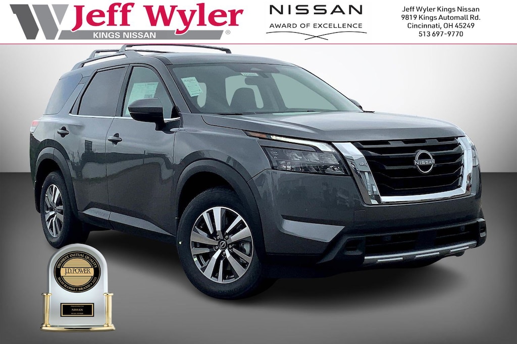 $10,916 off MSRP! Jeff Wyler Kings Nissan is excited to offer this good-looking 2025 Nissan Pathfinder SL in Gun Metallic. Well equipped with: Black Appearance Package (Black Grille and Black Liftgate Emblems), Cargo Package (Cargo Area Protector, Cargo Net, and First Aid), 4WD, 3rd row seats: bench, 4-Wheel Disc Brakes, 6 Speakers, ABS brakes, Air Conditioning, Alloy wheels, AM/FM radio: SiriusXM, Auto High-beam Headlights, Auto-dimming Rear-View mirror, Automatic temperature control, Bench Seat Carpeted Floor Mats (set of 4), Brake assist, Bumpers: body-color, Delay-off headlights, Driver door bin, Driver vanity mirror, Dual front impact airbags, Dual front side impact airbags, Electronic Stability Control, Emergency communication system, Exterior Parking Camera Rear, Four wheel independent suspension, Front anti-roll bar, Front Bucket Seats, Front Center Armrest, Front dual zone A/C, Front reading lights, Fully automatic headlights, Garage door transmitter: HomeLink, Heated door mirrors, Heated Front Bucket Seats, Heated front seats, Heated steering wheel, Illuminated entry, Knee airbag, Leather steering wheel, Leather-Appointed Seating Surfaces, LED Fog Lamps, Low tire pressure warning, Navigation system: NissanConnect with Navigation and Services, Nissan USB Charging Cable Set, NissanConnect featuring Apple CarPlay and Android Auto, NissanConnect with Navigation and Services, Occupant sensing airbag, Outside temperature display, Overhead airbag, Overhead console, Panic alarm, Passenger door bin, Passenger vanity mirror, Power door mirrors, Power driver seat, Power Liftgate, Power passenger seat, Power steering, Power windows, Radio data system, Radio: AM/FM Audio System, Rear air conditioning, Rear anti-roll bar, Rear reading lights, Rear seat center armrest, Rear side impact airbag, Rear window defroster, Rear window wiper, Reclining 3rd row seat, Remote keyless entry, Security system, Speed control, Speed-sensing steering, Split folding rear seat, Spoiler, Steering wheel mounted audio controls, Tachometer, Telescoping steering wheel, Tilt steering wheel, Traction control, Trip computer, Turn signal indicator mirrors, Variably intermittent wipers, and Wheels: 18" x 8J Machined Alloy. 21/27 City/Highway MPGWyler Family First Package Includes: NanoCure Appearance Protection: Exterior & Interior Chemical Sealant Applied to Protect Against Environmental Hazards (7 Year Warranty Coverage). Pulse- Rear end Collision Avoidance System Theft Deterrent Strategy gives you 5 Years of Coverage against vehicle Theft, Offering up to a $5,000 benefit. Used vehicles 10 years of age or newer with less than 100,000 miles are eligible for the Wyler Assurance Program, but eligible vehicles must pass our reconditioning process and multi-point inspection. Provided the vehicle passes inspection, vehicles will be eligible for the 6 month/6,000 mile limited warranty. The 6 month/6,000 mile limited warranty is NOT available on AS-IS vehicles, wholesale vehicles, lease buyback/pass-thru vehicles or un-inspected vehicles. Note that this program can also apply to vehicles where the remaining factory coverage is less than 6 months or 6,000 miles. Please check the Federal Trade Commission (FTC) Buyers guide on the vehicle for full details as to whether or not warranty coverage may apply. Contact Dealer for additional details. The Wyler Assurance 6 month/6,000 Mile limited warranty ends 6 months from the date of the Retail Purchase Agreement (BUYERS ORDER) or when the vehicle's odometer registers 6,000 additional miles to the mileage listed on the BUYERS ORDER, whichever comes first. Your Deductible - The warranty holder on your contract pays the first $100 of each covered repair. Price includes: $5000 - Nissan Customer Cash. Exp. 01/05/2026
