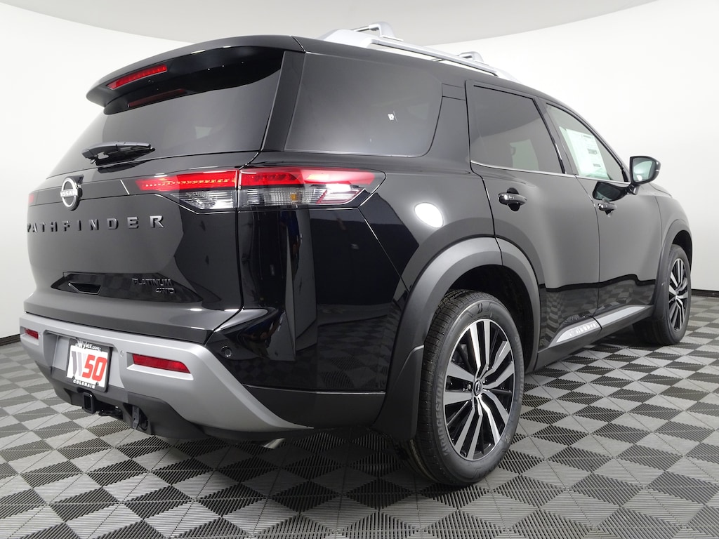 $10,104 off MSRP! Priced below KBB Fair Purchase Price! Super Black 2025 Nissan Pathfinder Platinum 4WD 9-Speed Automatic Jeff Wyler Nissan of Cincinnati is delighted to offer this gorgeous-looking 2025 Nissan Pathfinder Platinum in Super Black. Well equipped with: Black Appearance Package (Black Grille and Black Liftgate Emblems), Cargo Package (Cargo Area Protector, Cargo Net, and First Aid), Lighting Package (N92) (Illuminated Kick Plate and Welcome Lighting), 4WD, 13 Speakers, 3rd row seats: bench, 4-Wheel Disc Brakes, ABS brakes, Air Conditioning, Alloy wheels, AM/FM radio: SiriusXM, Auto High-beam Headlights, Auto tilt-away steering wheel, Auto-dimming Rear-View mirror, Automatic temperature control, Bench Seat Carpeted Floor Mats (Set of 4), Bodyside moldings, Bose Premium Audio System, Brake assist, Bumpers: body-color, Climate Controlled Front Bucket Seats, Cross Bars, Delay-off headlights, Driver door bin, Driver vanity mirror, Dual front impact airbags, Dual front side impact airbags, Electronic Stability Control, Emergency communication system, Exterior Parking Camera Rear, Four wheel independent suspension, Front anti-roll bar, Front Bucket Seats, Front Center Armrest, Front dual zone A/C, Front reading lights, Fully automatic headlights, Garage door transmitter: HomeLink, Heads-Up Display, Heated door mirrors, Heated front seats, Heated rear seats, Heated steering wheel, Illuminated entry, Knee airbag, Leather steering wheel, LED Fog Lamps, Low tire pressure warning, Memory seat, Navigation system: NissanConnect with Navigation and Services, NissanConnect featuring Apple CarPlay and Android Auto, NissanConnect w/Navigation & Services, Occupant sensing airbag, Outside temperature display, Overhead airbag, Overhead console, Panic alarm, Passenger door bin, Passenger vanity mirror, Power door mirrors, Power driver seat, Power Liftgate, Power moonroof, Power passenger seat, Power steering, Power windows, Radio data system, Radio: AM/FM Audio System, Rain sensing wipers, Rear air conditioning, Rear anti-roll bar, Rear reading lights, Rear seat center armrest, Rear side impact airbag, Rear window defroster, Rear window wiper, Reclining 3rd row seat, Remote keyless entry, Security system, Semi-Aniline Leather-Appointed Seating Surfaces, Speed control, Speed-sensing steering, Speed-Sensitive Wipers, Split folding rear seat, Spoiler, Steering wheel memory, Steering wheel mounted audio controls, Tachometer, Telescoping steering wheel, Tilt steering wheel, Traction control, Trip computer, Turn signal indicator mirrors, Variably intermittent wipers, Ventilated front seats, and Wheels: 20" x 8J Machined Alloy. 3.5L V6 DOHC 4WD.Recent Arrival!Wyler Family First Package Includes: NanoCure Appearance Protection: Exterior & Interior Chemical Sealant Applied to Protect Against Environmental Hazards (7 Year Warranty Coverage). Pulse- Rear end Collision Avoidance System Theft Deterrent Strategy gives you 5 Years of Coverage against vehicle Theft, Offering up to a $5,000 benefit. Price includes: $5000 - Nissan Customer Cash. Exp. 11/03/2025