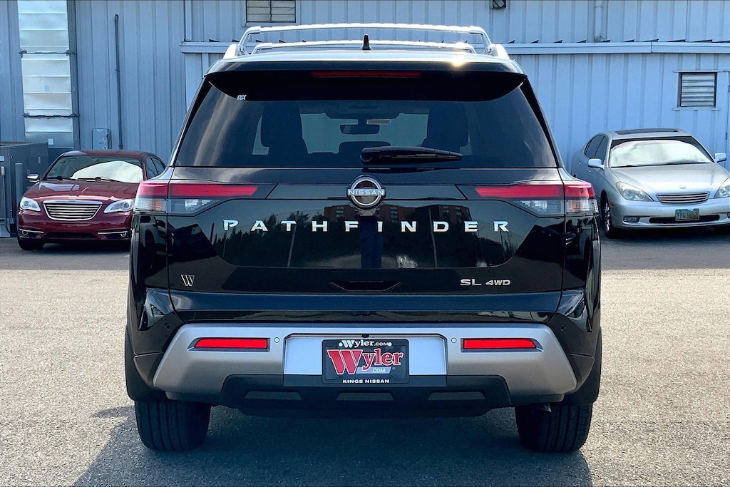 $8,752 off MSRP! Jeff Wyler Kings Nissan is very proud to offer this good-looking 2025 Nissan Pathfinder SL in Super Black. Well equipped with: Cargo Package (Cargo Area Protector, Cargo Net, and First Aid), 4WD, 3rd row seats: bench, 4-Wheel Disc Brakes, 6 Speakers, ABS brakes, Air Conditioning, Alloy wheels, AM/FM radio: SiriusXM, Auto High-beam Headlights, Auto-dimming Rear-View mirror, Automatic temperature control, Bench Seat Carpeted Floor Mats (Set of 4), Brake assist, Bumpers: body-color, Cross Bars, Delay-off headlights, Driver door bin, Driver vanity mirror, Dual front impact airbags, Dual front side impact airbags, Electronic Stability Control, Emergency communication system, Exterior Parking Camera Rear, Four wheel independent suspension, Front anti-roll bar, Front Bucket Seats, Front Center Armrest, Front dual zone A/C, Front reading lights, Fully automatic headlights, Garage door transmitter: HomeLink, Heated door mirrors, Heated Front Bucket Seats, Heated front seats, Heated steering wheel, Illuminated entry, Knee airbag, Leather steering wheel, Leather-Appointed Seating Surfaces, LED Fog Lamps, Low tire pressure warning, Navigation system: NissanConnect with Navigation and Services, NissanConnect featuring Apple CarPlay and Android Auto, NissanConnect w/Navigation & Services, Occupant sensing airbag, Outside temperature display, Overhead airbag, Overhead console, Panic alarm, Passenger door bin, Passenger vanity mirror, Power door mirrors, Power driver seat, Power Liftgate, Power passenger seat, Power steering, Power windows, Radio data system, Radio: AM/FM Audio System, Rear air conditioning, Rear anti-roll bar, Rear reading lights, Rear seat center armrest, Rear side impact airbag, Rear window defroster, Rear window wiper, Reclining 3rd row seat, Remote keyless entry, Security system, Speed control, Speed-sensing steering, Split folding rear seat, Spoiler, Steering wheel mounted audio controls, Tachometer, Telescoping steering wheel, Tilt steering wheel, Traction control, Trip computer, Turn signal indicator mirrors, Variably intermittent wipers, and Wheels: 18" x 8J Machined Alloy. 21/27 City/Highway MPGWyler Family First Package Includes: NanoCure Appearance Protection: Exterior & Interior Chemical Sealant Applied to Protect Against Environmental Hazards (7 Year Warranty Coverage). Pulse- Rear end Collision Avoidance System Theft Deterrent Strategy gives you 5 Years of Coverage against vehicle Theft, Offering up to a $5,000 benefit. Used vehicles 10 years of age or newer with less than 100,000 miles are eligible for the Wyler Assurance Program, but eligible vehicles must pass our reconditioning process and multi-point inspection. Provided the vehicle passes inspection, vehicles will be eligible for the 6 month/6,000 mile limited warranty. The 6 month/6,000 mile limited warranty is NOT available on AS-IS vehicles, wholesale vehicles, lease buyback/pass-thru vehicles or un-inspected vehicles. Note that this program can also apply to vehicles where the remaining factory coverage is less than 6 months or 6,000 miles. Please check the Federal Trade Commission (FTC) Buyers guide on the vehicle for full details as to whether or not warranty coverage may apply. Contact Dealer for additional details. The Wyler Assurance 6 month/6,000 Mile limited warranty ends 6 months from the date of the Retail Purchase Agreement (BUYERS ORDER) or when the vehicle's odometer registers 6,000 additional miles to the mileage listed on the BUYERS ORDER, whichever comes first. Your Deductible - The warranty holder on your contract pays the first $100 of each covered repair. Price includes: $5000 - Nissan Customer Cash. Exp. 11/03/2025