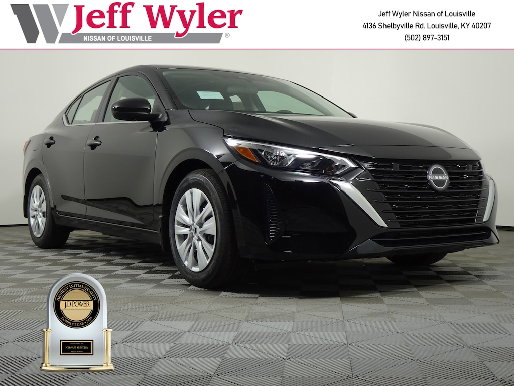 Recent Arrival! Jeff Wyler Nissan of Louisville is pumped up to offer this terrific-looking 2025 Nissan Sentra S in Super Black. Well equipped with: CVT with Xtronic, Charcoal Cloth, 4 Speakers, ABS brakes, Air Conditioning, AM/FM radio, Auto High-beam Headlights, Blind Spot Warning, Body Colored Splash Guards (4-Piece), Brake assist, Bumpers: body-color, Carpeted Floor Mats with Trunk Mat, Cloth Seat Trim, Delay-off headlights, Driver door bin, Driver vanity mirror, Dual front impact airbags, Dual front side impact airbags, Electronic Stability Control, Four wheel independent suspension, Front anti-roll bar, Front Bucket Seats, Front Center Armrest, Front reading lights, Fully automatic headlights, Illuminated entry, Knee airbag, Low tire pressure warning, NissanConnect featuring Apple CarPlay and Android Auto, Occupant sensing airbag, Outside temperature display, Overhead airbag, Overhead console, Panic alarm, Passenger door bin, Passenger vanity mirror, Power door mirrors, Power steering, Power windows, Radio data system, Radio: AM/FM with RDS/MP3/Aux-in, Rear anti-roll bar, Rear Parking Sensors, Rear side impact airbag, Rear window defroster, Remote keyless entry, Speed control, Speed-sensing steering, Split folding rear seat, Steering wheel mounted audio controls, Tachometer, Telescoping steering wheel, Tilt steering wheel, Traction control, Trip computer, Variably intermittent wipers, and Wheels: 16" Steel with Full Covers.2025 Nissan Sentra S Super Black Wyler Family First Package Includes: NanoCure Appearance Protection: Exterior & Interior Chemical Sealant Applied to Protect Against Environmental Hazards (7 Year Warranty Coverage). Pulse- Rear end Collision Avoidance System Theft Deterrent Strategy gives you 5 Years of Coverage against vehicle Theft, Offering up to a $5,000 benefit. CVT with Xtronic, Charcoal Cloth. Customer's May Not Qualify for All Rebates. Prices Do Not Include Tax, License. $500 - Nissan MY25 Sentra Bonus Cash. Exp. 01/05/2026 $500 - Nissan National Holiday Bonus Cash. Exp. 01/02/2026