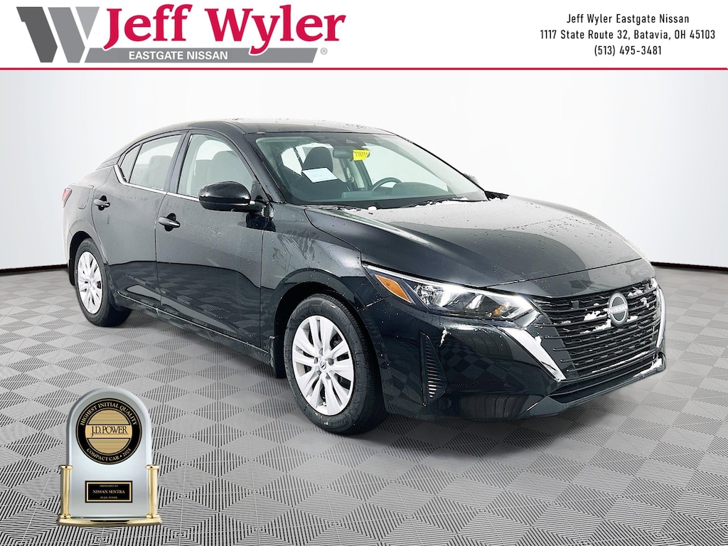 Priced below KBB Fair Purchase Price! Super Black 2025 Nissan Sentra S 2.0L I4 DOHC FWD CVT with Xtronic 30/40 City/Highway MPG Jeff Wyler Eastgate Auto Mall is pumped up to offer this good-looking 2025 Nissan Sentra S in Super Black. Well equipped with: 4 Speakers, ABS brakes, Air Conditioning, AM/FM radio, Auto High-beam Headlights, Blind Spot Warning, Body Colored Splash Guards (4-Piece), Brake assist, Bumpers: body-color, Carpeted Floor Mats with Trunk Mat, Cloth Seat Trim, Delay-off headlights, Driver door bin, Driver vanity mirror, Dual front impact airbags, Dual front side impact airbags, Electronic Stability Control, Four wheel independent suspension, Front anti-roll bar, Front Bucket Seats, Front Center Armrest, Front reading lights, Fully automatic headlights, Illuminated entry, Knee airbag, Low tire pressure warning, NissanConnect featuring Apple CarPlay and Android Auto, Occupant sensing airbag, Outside temperature display, Overhead airbag, Overhead console, Panic alarm, Passenger door bin, Passenger vanity mirror, Power door mirrors, Power steering, Power windows, Radio data system, Radio: AM/FM with RDS/MP3/Aux-in, Rear anti-roll bar, Rear Parking Sensors, Rear side impact airbag, Rear window defroster, Remote keyless entry, Speed control, Speed-sensing steering, Split folding rear seat, Steering wheel mounted audio controls, Tachometer, Telescoping steering wheel, Tilt steering wheel, Traction control, Trip computer, Variably intermittent wipers, and Wheels: 16" Steel with Full Covers. 30/40 City/Highway MPG Price includes: $500 - Nissan MY25 Sentra Bonus Cash. Exp. 01/05/2026 $500 - Nissan National Holiday Bonus Cash. Exp. 01/02/2026