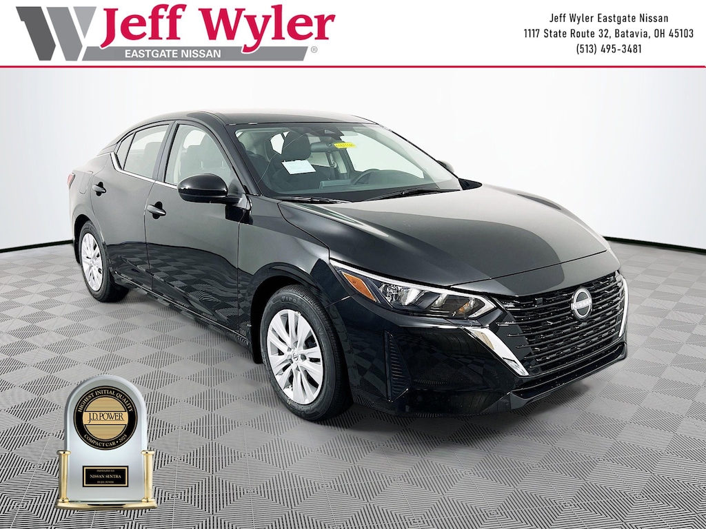 Priced below KBB Fair Purchase Price! Super Black 2025 Nissan Sentra S 2.0L I4 DOHC FWD CVT with Xtronic 30/40 City/Highway MPG Jeff Wyler Eastgate Auto Mall is delighted to offer this wonderful-looking 2025 Nissan Sentra S in Super Black. Well equipped with: 4 Speakers, ABS brakes, Air Conditioning, AM/FM radio, Auto High-beam Headlights, Blind Spot Warning, Body Colored Splash Guards (4-Piece), Brake assist, Bumpers: body-color, Carpeted Floor Mats with Trunk Mat, Cloth Seat Trim, Delay-off headlights, Driver door bin, Driver vanity mirror, Dual front impact airbags, Dual front side impact airbags, Electronic Stability Control, Four wheel independent suspension, Front anti-roll bar, Front Bucket Seats, Front Center Armrest, Front reading lights, Fully automatic headlights, Illuminated entry, Knee airbag, Low tire pressure warning, NissanConnect featuring Apple CarPlay and Android Auto, Occupant sensing airbag, Outside temperature display, Overhead airbag, Overhead console, Panic alarm, Passenger door bin, Passenger vanity mirror, Power door mirrors, Power steering, Power windows, Radio data system, Radio: AM/FM with RDS/MP3/Aux-in, Rear anti-roll bar, Rear Parking Sensors, Rear side impact airbag, Rear window defroster, Remote keyless entry, Speed control, Speed-sensing steering, Split folding rear seat, Steering wheel mounted audio controls, Tachometer, Telescoping steering wheel, Tilt steering wheel, Traction control, Trip computer, Variably intermittent wipers, and Wheels: 16" Steel with Full Covers. 30/40 City/Highway MPG Price includes: $500 - Nissan MY25 Sentra Bonus Cash. Exp. 01/05/2026 $500 - Nissan National Holiday Bonus Cash. Exp. 01/02/2026