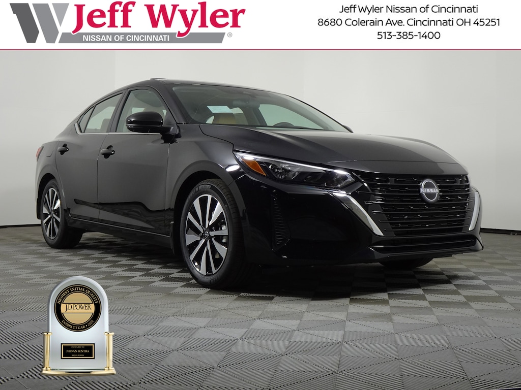 $4,255 off MSRP! Super Black 2025 Nissan Sentra SV FWD CVT with Xtronic Jeff Wyler Nissan of Cincinnati is proud to offer this outstanding 2025 Nissan Sentra SV in Super Black. Well equipped with: All-Weather Package (Dual Zone Auto Climate Control, Heated Exterior Mirrors, Heated Front Seats, Leather-Wrapped Heated Steering Wheel, and Remote Engine Start), SV Premium Package (17" Alloy Wheels, 6-Way Power Driver's Seat, Bose Premium Audio System with 8 Speakers, Intelligent Around View Monitor (I-AVM), Leather Shift Knob, Power Sliding Glass Moonroof with Tilt Feature, Quilted Leather Seat Trim, Rear Armrest with 2 Cupholders, and Turn Signal Indicators on Exterior Mirrors), CVT with Xtronic, Sv Premium Leather, 16" Alloy Wheels, 4-Wheel Disc Brakes, 8 Speakers, ABS brakes, Air Conditioning, Alloy wheels, AM/FM radio: SiriusXM, Auto High-beam Headlights, Blind Spot Warning, Body Colored Splash Guards (4-Piece), Brake assist, Bumpers: body-color, Carpeted Floor Mats with Trunk Mat, Clear Rear Bumper Protector, Delay-off headlights, Door Sill Plates, Driver door bin, Driver vanity mirror, Dual front impact airbags, Dual front side impact airbags, Electronic Stability Control, Four wheel independent suspension, Front anti-roll bar, Front Bucket Seats, Front Center Armrest, Front reading lights, Fully automatic headlights, Illuminated entry, Knee airbag, Low tire pressure warning, Nissan Connect Services, NissanConnect featuring Apple CarPlay and Android Auto, NissanConnect Services, Occupant sensing airbag, Outside temperature display, Overhead airbag, Overhead console, Panic alarm, Passenger door bin, Passenger vanity mirror, Power door mirrors, Power steering, Power windows, Radio data system, Radio: AM/FM with RDS/MP3/Aux-in, Rear anti-roll bar, Rear Parking Sensors, Rear side impact airbag, Rear window defroster, Remote keyless entry, Security system, Speed control, Speed-sensing steering, Split folding rear seat, Steering wheel mounted audio controls, Tachometer, Telescoping steering wheel, Tilt steering wheel, Traction control, Trip computer, Upgraded Cloth Seat Trim, Variably intermittent wipers, and Wi-Fi Hotspot. 2.0L I4 DOHC CVT with Xtronic, Sv Premium Leather.30/40 City/Highway MPGWyler Family First Package Includes: NanoCure Appearance Protection: Exterior & Interior Chemical Sealant Applied to Protect Against Environmental Hazards (7 Year Warranty Coverage). Pulse- Rear end Collision Avoidance System Theft Deterrent Strategy gives you 5 Years of Coverage against vehicle Theft, Offering up to a $5,000 benefit. Price includes: $500 - Nissan MY25 Sentra Bonus Cash. Exp. 01/05/2026 $500 - Nissan National Holiday Bonus Cash. Exp. 01/02/2026