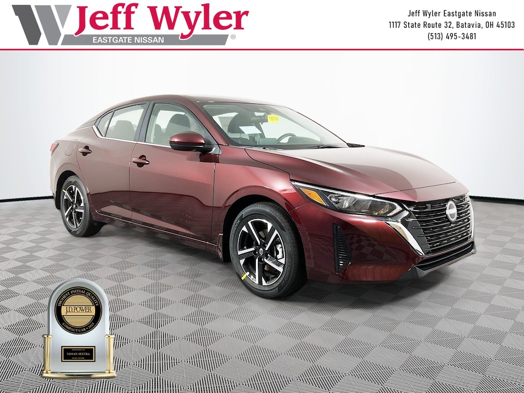 Priced below KBB Fair Purchase Price! Rosewood Metallic 2025 Nissan Sentra SV 2.0L I4 DOHC FWD CVT with Xtronic 30/40 City/Highway MPG Jeff Wyler Eastgate Auto Mall is proud to offer this outstanding-looking 2025 Nissan Sentra SV in Rosewood Metallic. Well equipped with: 16" Alloy Wheels, 4-Wheel Disc Brakes, 8 Speakers, ABS brakes, Air Conditioning, Alloy wheels, AM/FM radio: SiriusXM, Auto High-beam Headlights, Blind Spot Warning, Body Colored Splash Guards (4-Piece), Brake assist, Bumpers: body-color, Carpeted Floor Mats with Trunk Mat, Clear Rear Bumper Protector, Delay-off headlights, Door Sill Plates, Driver door bin, Driver vanity mirror, Dual front impact airbags, Dual front side impact airbags, Electronic Stability Control, Four wheel independent suspension, Front anti-roll bar, Front Bucket Seats, Front Center Armrest, Front reading lights, Fully automatic headlights, Illuminated entry, Knee airbag, Low tire pressure warning, NissanConnect featuring Apple CarPlay and Android Auto, Occupant sensing airbag, Outside temperature display, Overhead airbag, Overhead console, Panic alarm, Passenger door bin, Passenger vanity mirror, Power door mirrors, Power steering, Power windows, Radio data system, Radio: AM/FM with RDS/MP3/Aux-in, Rear anti-roll bar, Rear Parking Sensors, Rear side impact airbag, Rear window defroster, Remote keyless entry, Security system, Speed control, Speed-sensing steering, Split folding rear seat, Steering wheel mounted audio controls, Tachometer, Telescoping steering wheel, Tilt steering wheel, Traction control, Trip computer, Upgraded Cloth Seat Trim, and Variably intermittent wipers. 30/40 City/Highway MPG Price includes: $500 - Nissan MY25 Sentra Bonus Cash. Exp. 01/05/2026 $500 - Nissan National Holiday Bonus Cash. Exp. 01/02/2026
