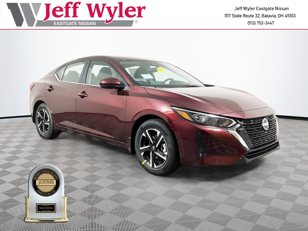 Priced below KBB Fair Purchase Price! Rosewood Metallic 2025 Nissan Sentra SV 2.0L I4 DOHC FWD CVT with Xtronic 30/40 City/Highway MPG Jeff Wyler Eastgate Auto Mall is pumped up to offer this charming 2025 Nissan Sentra SV in Rosewood Metallic. Well equipped with: 16" Alloy Wheels, 4-Wheel Disc Brakes, 8 Speakers, ABS brakes, Air Conditioning, Alloy wheels, AM/FM radio: SiriusXM, Auto High-beam Headlights, Blind Spot Warning, Body Colored Splash Guards (4-Piece), Brake assist, Bumpers: body-color, Carpeted Floor Mats with Trunk Mat, Clear Rear Bumper Protector, Delay-off headlights, Door Sill Plates, Driver door bin, Driver vanity mirror, Dual front impact airbags, Dual front side impact airbags, Electronic Stability Control, Four wheel independent suspension, Front anti-roll bar, Front Bucket Seats, Front Center Armrest, Front reading lights, Fully automatic headlights, Illuminated entry, Knee airbag, Low tire pressure warning, NissanConnect featuring Apple CarPlay and Android Auto, Occupant sensing airbag, Outside temperature display, Overhead airbag, Overhead console, Panic alarm, Passenger door bin, Passenger vanity mirror, Power door mirrors, Power steering, Power windows, Radio data system, Radio: AM/FM with RDS/MP3/Aux-in, Rear anti-roll bar, Rear Parking Sensors, Rear side impact airbag, Rear window defroster, Remote keyless entry, Security system, Speed control, Speed-sensing steering, Split folding rear seat, Steering wheel mounted audio controls, Tachometer, Telescoping steering wheel, Tilt steering wheel, Traction control, Trip computer, Upgraded Cloth Seat Trim, and Variably intermittent wipers. 30/40 City/Highway MPG Price includes: $500 - Nissan MY25 Sentra Bonus Cash. Exp. 01/05/2026
