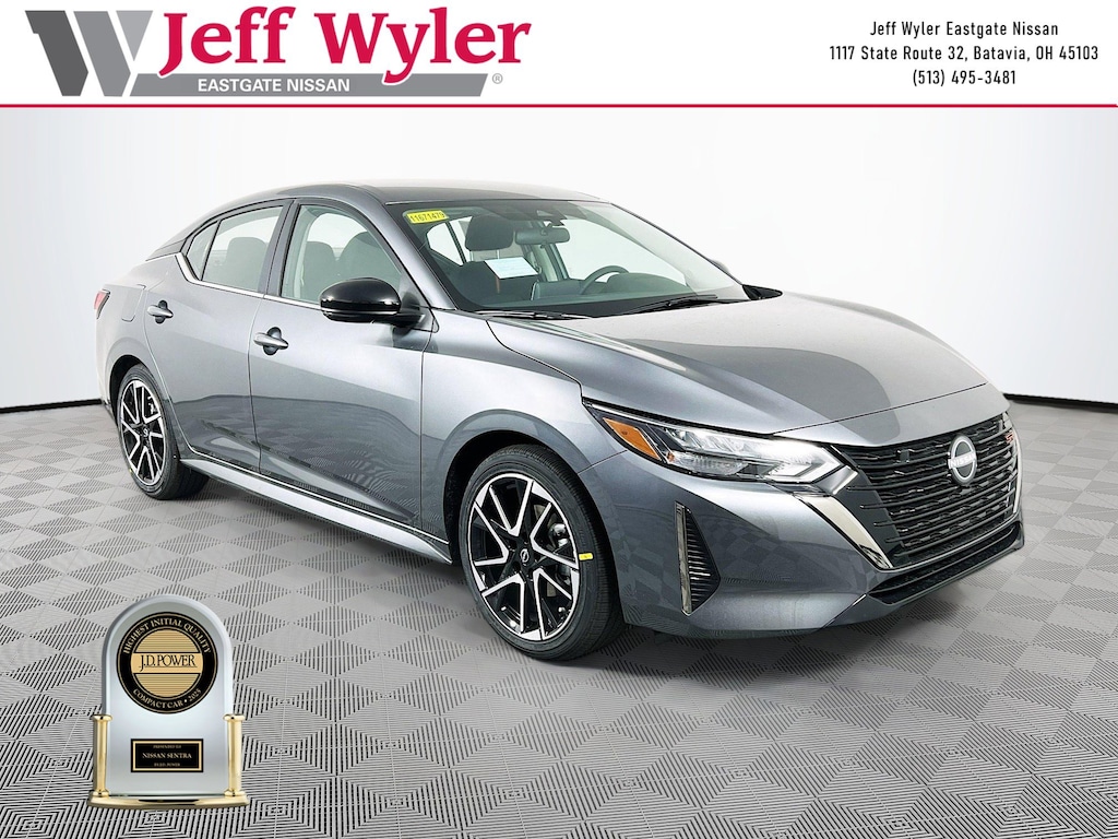 Priced below KBB Fair Purchase Price! Gun Metallic 2025 Nissan Sentra SR 2.0L I4 DOHC FWD CVT with Xtronic 30/38 City/Highway MPG Jeff Wyler Eastgate Auto Mall is pleased to offer this superb-looking 2025 Nissan Sentra SR in Gun Metallic. Well equipped with: 18" Alloy Wheels, 4-Wheel Disc Brakes, 8 Speakers, ABS brakes, Air Conditioning, Alloy wheels, AM/FM radio: SiriusXM, Auto High-beam Headlights, Automatic temperature control, Blind Spot Warning, Brake assist, Bumpers: body-color, Carpeted Floor Mats with Trunk Mat, Clear Rear Bumper Protector, Delay-off headlights, Door Sill Plates, Driver door bin, Driver vanity mirror, Dual front impact airbags, Dual front side impact airbags, Electronic Stability Control, Four wheel independent suspension, Front anti-roll bar, Front Bucket Seats, Front Center Armrest, Front dual zone A/C, Front reading lights, Fully automatic headlights, Heated door mirrors, Heated Front Bucket Seats, Heated front seats, Illuminated entry, Knee airbag, Leather Shift Knob, Low tire pressure warning, NissanConnect featuring Apple CarPlay and Android Auto, Occupant sensing airbag, Outside temperature display, Overhead airbag, Overhead console, Panic alarm, Passenger door bin, Passenger vanity mirror, Power door mirrors, Power steering, Power windows, Radio data system, Radio: AM/FM with RDS/MP3/Aux-in, Rear anti-roll bar, Rear Parking Sensors, Rear seat center armrest, Rear side impact airbag, Rear window defroster, Remote keyless entry, Security system, Speed control, Speed-sensing steering, Split folding rear seat, Spoiler, Sport Cloth Seat Trim, Steering wheel mounted audio controls, Tachometer, Telescoping steering wheel, Tilt steering wheel, Traction control, Trip computer, Turn signal indicator mirrors, and Variably intermittent wipers. 30/38 City/Highway MPG Price includes: $500 - Nissan MY25 Sentra Bonus Cash. Exp. 01/05/2026 $500 - Nissan National Holiday Bonus Cash. Exp. 01/02/2026