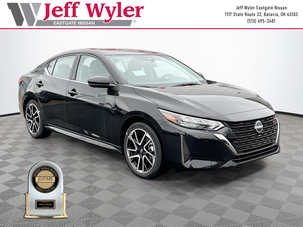 Super Black 2025 Nissan Sentra SR 2.0L I4 DOHC FWD CVT with Xtronic 30/38 City/Highway MPG Jeff Wyler Eastgate Auto Mall is excited to offer this beautiful-looking 2025 Nissan Sentra SR in Super Black. Well equipped with: SR Premium Package (6-Way Power Driver's Seat, Bose Premium Audio System with 8 Speakers, Intelligent Around View Monitor (I-AVM), Leather Heated Steering Wheel, Leatherette Seat Trim, NissanConnect Services, Power Sliding Glass Moonroof with Tilt Feature, Sunvisors with Illuminated Vanity Mirrors, and Wi-Fi Hotspot), 18" Alloy Wheels, 4-Wheel Disc Brakes, 8 Speakers, ABS brakes, Air Conditioning, Alloy wheels, AM/FM radio: SiriusXM, Auto High-beam Headlights, Automatic temperature control, Blind Spot Warning, Brake assist, Bumpers: body-color, Carpeted Floor Mats with Trunk Mat, Clear Rear Bumper Protector, Delay-off headlights, Door Sill Plates, Driver door bin, Driver vanity mirror, Dual front impact airbags, Dual front side impact airbags, Electronic Stability Control, Four wheel independent suspension, Front anti-roll bar, Front Bucket Seats, Front Center Armrest, Front dual zone A/C, Front reading lights, Fully automatic headlights, Heated door mirrors, Heated Front Bucket Seats, Heated front seats, Illuminated entry, Knee airbag, Leather Shift Knob, Low tire pressure warning, NissanConnect featuring Apple CarPlay and Android Auto, Occupant sensing airbag, Outside temperature display, Overhead airbag, Overhead console, Panic alarm, Passenger door bin, Passenger vanity mirror, Power door mirrors, Power steering, Power windows, Radio data system, Radio: AM/FM with RDS/MP3/Aux-in, Rear anti-roll bar, Rear Parking Sensors, Rear seat center armrest, Rear side impact airbag, Rear window defroster, Remote keyless entry, Security system, Speed control, Speed-sensing steering, Split folding rear seat, Spoiler, Sport Cloth Seat Trim, Steering wheel mounted audio controls, Tachometer, Telescoping steering wheel, Tilt steering wheel, Traction control, Trip computer, Turn signal indicator mirrors, and Variably intermittent wipers. 30/38 City/Highway MPG Price includes: $1250 - Nissan MY25 Bonus Cash. Exp. 03/02/2026 $500 - Nissan MWR MY25 Sentra Customer Bonus Cash - February. Exp. 03/02/2026