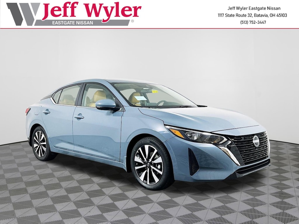 Atlantic Gray Metallic 2025 Nissan Sentra SV 2.0L I4 DOHC FWD CVT with Xtronic 30/40 City/Highway MPG Jeff Wyler Eastgate Auto Mall is delighted to offer this charming 2025 Nissan Sentra SV in Atlantic Gray Metallic. Well equipped with: All-Weather Package (Dual Zone Auto Climate Control, Heated Exterior Mirrors, Heated Front Seats, Leather-Wrapped Heated Steering Wheel, and Remote Engine Start), SV Premium Package (17" Alloy Wheels, 6-Way Power Driver's Seat, Bose Premium Audio System w/8 Speakers, Intelligent Around View Monitor (I-AVM), Leather Shift Knob, Power Sliding Glass Moonroof w/Tilt Feature, Quilted Leather Seat Trim, Rear Armrest w/2 Cupholders, and Turn Signal Indicators On Exterior Mirrors), 16" Alloy Wheels, 4-Wheel Disc Brakes, 8 Speakers, ABS brakes, Air Conditioning, Alloy wheels, AM/FM radio: SiriusXM, Auto High-beam Headlights, Blind Spot Warning, Body Colored Splash Guards (4-Piece), Brake assist, Bumpers: body-color, Carpeted Floor Mats w/Trunk Mat, Clear Rear Bumper Protector, Delay-off headlights, Door Sill Plates, Driver door bin, Driver vanity mirror, Dual front impact airbags, Dual front side impact airbags, Electronic Stability Control, Four wheel independent suspension, Front anti-roll bar, Front Bucket Seats, Front Center Armrest, Front reading lights, Fully automatic headlights, Illuminated entry, Knee airbag, Low tire pressure warning, Nissan Connect Services, Nissan USB Charging Cable Set, NissanConnect featuring Apple CarPlay and Android Auto, NissanConnect Services, Occupant sensing airbag, Outside temperature display, Overhead airbag, Overhead console, Panic alarm, Passenger door bin, Passenger vanity mirror, Power door mirrors, Power steering, Power windows, Premium Paint, Radio data system, Radio: AM/FM w/RDS/MP3/Aux-In, Rear anti-roll bar, Rear Parking Sensors, Rear side impact airbag, Rear window defroster, Remote keyless entry, Security system, Speed control, Speed-sensing steering, Split folding rear seat, Steering wheel mounted audio controls, Tachometer, Telescoping steering wheel, Tilt steering wheel, Traction control, Trip computer, Upgraded Cloth Seat Trim, Variably intermittent wipers, and Wi-Fi Hotspot. 30/40 City/Highway MPG Price includes: $500 - Nissan MY25 Sentra Bonus Cash. Exp. 12/01/2025