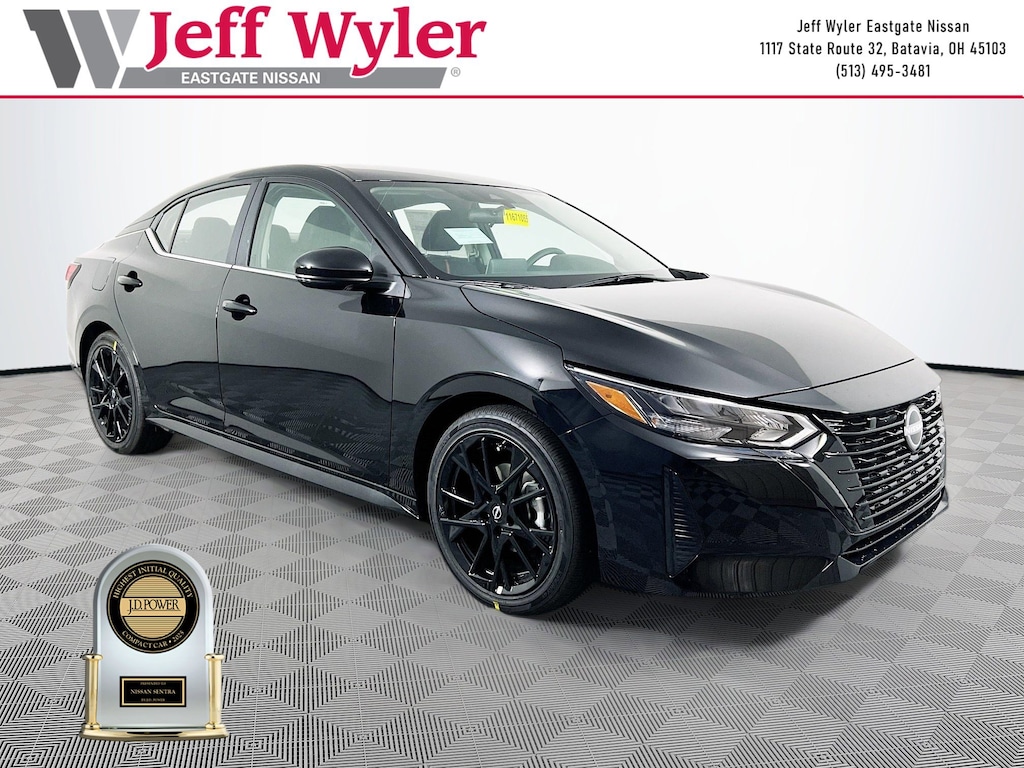 Priced below KBB Fair Purchase Price! Super Black 2025 Nissan Sentra SR 2.0L I4 DOHC FWD CVT with Xtronic 30/38 City/Highway MPG Jeff Wyler Eastgate Auto Mall is very proud to offer this wonderful 2025 Nissan Sentra SR in Super Black. Well equipped with: Midnight Edition (18" Black Alloy Wheels, Black Exterior Badging, Black Painted V-Motion Grille, Rear Spoiler, and Side Sills), Trunk Package (Hide-A-Way Trunk Net), 18" Alloy Wheels, 4-Wheel Disc Brakes, 8 Speakers, ABS brakes, Air Conditioning, Alloy wheels, AM/FM radio: SiriusXM, Auto High-beam Headlights, Automatic temperature control, Blind Spot Warning, Brake assist, Bumpers: body-color, Carpeted Floor Mats with Trunk Mat, Clear Rear Bumper Protector, Delay-off headlights, Door Sill Plates, Driver door bin, Driver vanity mirror, Dual front impact airbags, Dual front side impact airbags, Electronic Stability Control, Four wheel independent suspension, Front anti-roll bar, Front Bucket Seats, Front Center Armrest, Front dual zone A/C, Front reading lights, Fully automatic headlights, Heated door mirrors, Heated Front Bucket Seats, Heated front seats, Illuminated entry, Knee airbag, Leather Shift Knob, Low tire pressure warning, NissanConnect featuring Apple CarPlay and Android Auto, Occupant sensing airbag, Outside temperature display, Overhead airbag, Overhead console, Panic alarm, Passenger door bin, Passenger vanity mirror, Power door mirrors, Power steering, Power windows, Radio data system, Radio: AM/FM with RDS/MP3/Aux-in, Rear anti-roll bar, Rear Parking Sensors, Rear seat center armrest, Rear side impact airbag, Rear window defroster, Remote keyless entry, Security system, Speed control, Speed-sensing steering, Split folding rear seat, Spoiler, Sport Cloth Seat Trim, Steering wheel mounted audio controls, Tachometer, Telescoping steering wheel, Tilt steering wheel, Traction control, Trip computer, Turn signal indicator mirrors, and Variably intermittent wipers. 30/38 City/Highway MPG Price includes: $500 - Nissan MY25 Sentra Bonus Cash. Exp. 01/05/2026 $500 - Nissan National Holiday Bonus Cash. Exp. 01/02/2026
