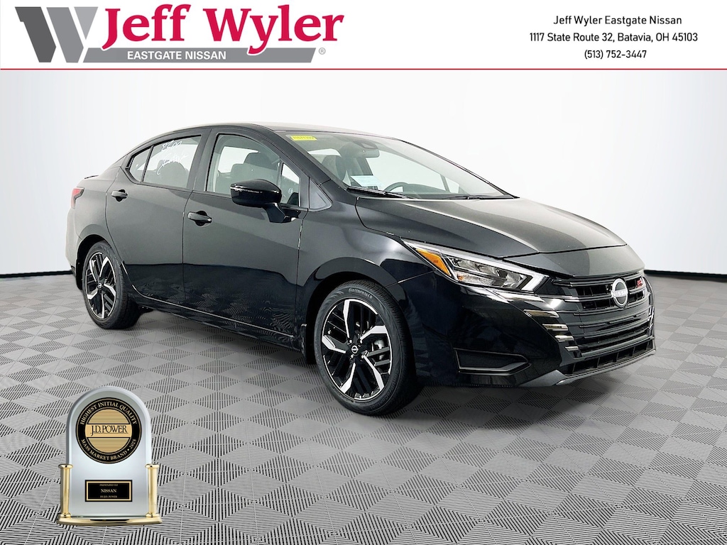 Priced below KBB Fair Purchase Price! Super Black Metallic 2025 Nissan Versa 1.6 SR 1.6L I4 DOHC 16V FWD CVT 32/40 City/Highway MPG Jeff Wyler Eastgate Auto Mall is proud to offer this good-looking 2025 Nissan Versa 1.6 SR in Super Black Metallic. Well equipped with: Trunk Package (Shopping Bag Hooks and Trunk Net), 17" Aluminum Alloy Wheels, 6 Speakers, ABS brakes, Air Conditioning, Alloy wheels, AM/FM radio: SiriusXM, Apple CarPlay/Android Auto, Auto High-beam Headlights, Automatic temperature control, Blind Spot Warning, Brake assist, Bumpers: body-color, Carpeted Floor Mats & Trunk Mat (5-Piece Set), Delay-off headlights, Driver door bin, Driver vanity mirror, Dual front impact airbags, Dual front side impact airbags, Electronic Stability Control, Emergency communication system, Front anti-roll bar, Front Bucket Seats, Front Center Armrest, Front reading lights, Front wheel independent suspension, Fully automatic headlights, Heated door mirrors, Heated Front Bucket Seats, Heated front seats, Illuminated entry, Knee airbag, Leather steering wheel, Low tire pressure warning, Occupant sensing airbag, Outside temperature display, Overhead airbag, Panic alarm, Passenger door bin, Passenger vanity mirror, Power door mirrors, Power steering, Power windows, Radio data system, Radio: AM/FM Audio System, Rear Parking Sensors, Rear side impact airbag, Rear window defroster, Remote keyless entry, Speed control, Splash Guards, Split folding rear seat, Spoiler, SR Fabric Seat Trim, Steering wheel mounted audio controls, Tachometer, Telescoping steering wheel, Tilt steering wheel, Traction control, Trip computer, Turn signal indicator mirrors, and Variably intermittent wipers. 32/40 City/Highway MPG Price includes: $750 - Nissan MY25 Versa Bonus Cash (All Markets) - December. Exp. 01/05/2026