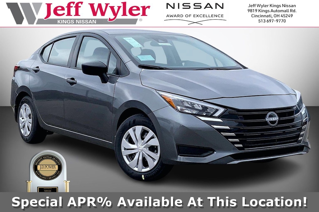 $3,360 off MSRP! Jeff Wyler Kings Nissan is pleased to offer this stunning-looking 2025 Nissan Versa 1.6 S in Gun Metallic. Well equipped with: Trunk Package (Shopping Bag Hooks and Trunk Net), 15" Steel Wheels w/Full Wheel Covers, 4 Speakers, ABS brakes, Air Conditioning, AM/FM radio, Auto High-beam Headlights, Brake assist, Bumpers: body-color, Carpeted Floor Mats, Cloth Seat Trim, Delay-off headlights, Driver door bin, Driver vanity mirror, Dual front impact airbags, Dual front side impact airbags, Electronic Stability Control, Front anti-roll bar, Front Bucket Seats, Front reading lights, Front wheel independent suspension, Fully automatic headlights, Illuminated entry, Knee airbag, Low tire pressure warning, Occupant sensing airbag, Outside temperature display, Overhead airbag, Panic alarm, Passenger door bin, Passenger vanity mirror, Power door mirrors, Power steering, Power windows, Radio data system, Radio: AM/FM Audio System, Rear Parking Sensors, Rear side impact airbag, Rear window defroster, Speed control, Splash Guards, Steering wheel mounted audio controls, Tachometer, Telescoping steering wheel, Tilt steering wheel, Traction control, Trip computer, and Variably intermittent wipers. 32/40 City/Highway MPGWyler Family First Package Includes: NanoCure Appearance Protection: Exterior & Interior Chemical Sealant Applied to Protect Against Environmental Hazards (7 Year Warranty Coverage). Pulse- Rear end Collision Avoidance System Theft Deterrent Strategy gives you 5 Years of Coverage against vehicle Theft, Offering up to a $5,000 benefit. Used vehicles 10 years of age or newer with less than 100,000 miles are eligible for the Wyler Assurance Program, but eligible vehicles must pass our reconditioning process and multi-point inspection. Provided the vehicle passes inspection, vehicles will be eligible for the 6 month/6,000 mile limited warranty. The 6 month/6,000 mile limited warranty is NOT available on AS-IS vehicles, wholesale vehicles, lease buyback/pass-thru vehicles or un-inspected vehicles. Note that this program can also apply to vehicles where the remaining factory coverage is less than 6 months or 6,000 miles. Please check the Federal Trade Commission (FTC) Buyers guide on the vehicle for full details as to whether or not warranty coverage may apply. Contact Dealer for additional details. The Wyler Assurance 6 month/6,000 Mile limited warranty ends 6 months from the date of the Retail Purchase Agreement (BUYERS ORDER) or when the vehicle's odometer registers 6,000 additional miles to the mileage listed on the BUYERS ORDER, whichever comes first. Your Deductible - The warranty holder on your contract pays the first $100 of each covered repair. Price includes: $750 - Nissan MY25 Versa Bonus Cash. Exp. 02/02/2026
