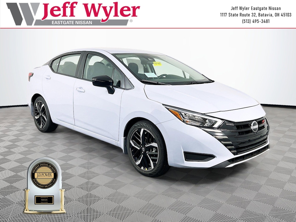 Gray Sky Pearl 2025 Nissan Versa 1.6 SR 1.6L I4 DOHC 16V FWD CVT 32/40 City/Highway MPG Jeff Wyler Eastgate Auto Mall is excited to offer this attractive-looking 2025 Nissan Versa 1.6 SR in Gray Sky Pearl. Well equipped with: Trunk Package (Shopping Bag Hooks and Trunk Net), 17" Aluminum Alloy Wheels, 6 Speakers, ABS brakes, Air Conditioning, Alloy wheels, AM/FM radio: SiriusXM, Apple CarPlay/Android Auto, Auto High-beam Headlights, Automatic temperature control, Blind Spot Warning, Brake assist, Bumpers: body-color, Carpeted Floor Mats & Trunk Mat (5-Piece Set), Delay-off headlights, Driver door bin, Driver vanity mirror, Dual front impact airbags, Dual front side impact airbags, Electronic Stability Control, Emergency communication system, Front anti-roll bar, Front Bucket Seats, Front Center Armrest, Front reading lights, Front wheel independent suspension, Fully automatic headlights, Heated door mirrors, Heated Front Bucket Seats, Heated front seats, Illuminated entry, Knee airbag, Leather steering wheel, Low tire pressure warning, Occupant sensing airbag, Outside temperature display, Overhead airbag, Panic alarm, Passenger door bin, Passenger vanity mirror, Power door mirrors, Power steering, Power windows, Premium Paint, Radio data system, Radio: AM/FM Audio System, Rear Parking Sensors, Rear side impact airbag, Rear window defroster, Remote keyless entry, Speed control, Splash Guards, Split folding rear seat, Spoiler, SR Fabric Seat Trim, Steering wheel mounted audio controls, Tachometer, Telescoping steering wheel, Tilt steering wheel, Traction control, Trip computer, Turn signal indicator mirrors, and Variably intermittent wipers. 32/40 City/Highway MPG Price includes: $750 - Nissan MY25 Versa Bonus Cash (All Markets) - December. Exp. 01/05/2026