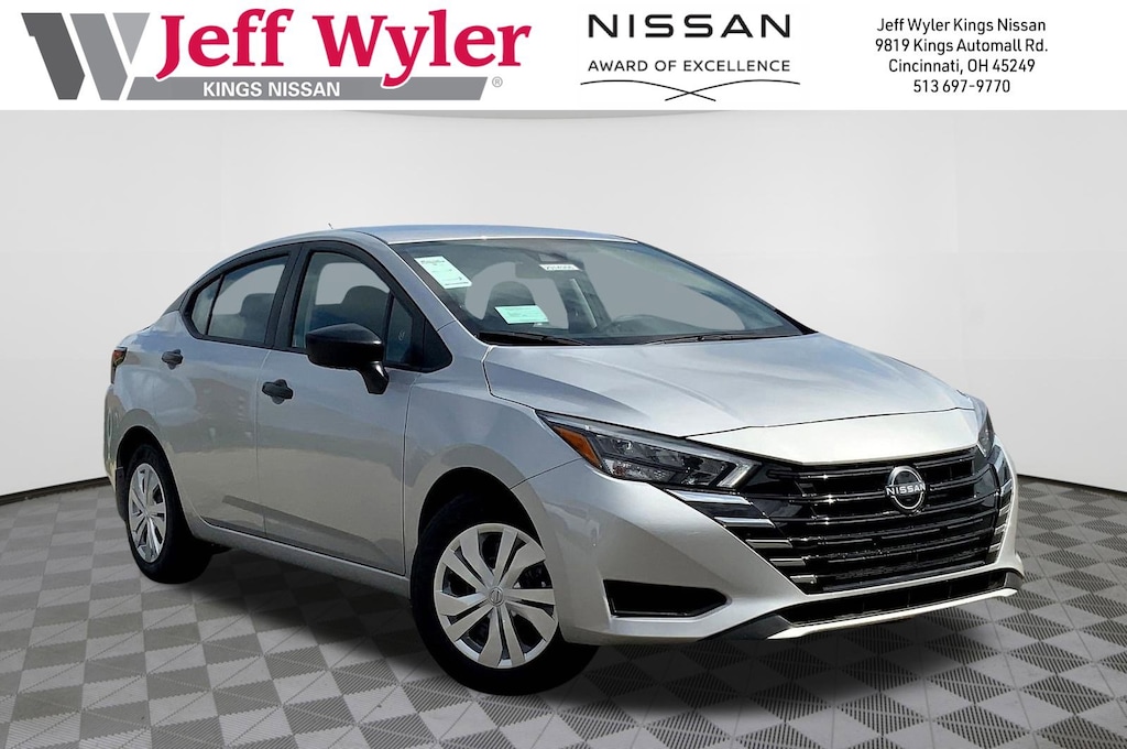 $2,583 off MSRP! Jeff Wyler Kings Nissan is honored to offer this attractive-looking 2025 Nissan Versa 1.6 S in Brilliant Silver Metallic. Well equipped with: Trunk Package (Shopping Bag Hooks and Trunk Net), 15" Steel Wheels w/Full Wheel Covers, 4 Speakers, ABS brakes, Air Conditioning, AM/FM radio, Auto High-beam Headlights, Brake assist, Bumpers: body-color, Carpeted Floor Mats, Cloth Seat Trim, Delay-off headlights, Driver door bin, Driver vanity mirror, Dual front impact airbags, Dual front side impact airbags, Electronic Stability Control, Front anti-roll bar, Front Bucket Seats, Front reading lights, Front wheel independent suspension, Fully automatic headlights, Illuminated entry, Knee airbag, Low tire pressure warning, Occupant sensing airbag, Outside temperature display, Overhead airbag, Panic alarm, Passenger door bin, Passenger vanity mirror, Power door mirrors, Power steering, Power windows, Radio data system, Radio: AM/FM Audio System, Rear Parking Sensors, Rear side impact airbag, Rear window defroster, Speed control, Splash Guards, Steering wheel mounted audio controls, Tachometer, Telescoping steering wheel, Tilt steering wheel, Traction control, Trip computer, and Variably intermittent wipers. 32/40 City/Highway MPGWyler Family First Package Includes: NanoCure Appearance Protection: Exterior & Interior Chemical Sealant Applied to Protect Against Environmental Hazards (7 Year Warranty Coverage). Pulse- Rear end Collision Avoidance System Theft Deterrent Strategy gives you 5 Years of Coverage against vehicle Theft, Offering up to a $5,000 benefit. Used vehicles 10 years of age or newer with less than 100,000 miles are eligible for the Wyler Assurance Program, but eligible vehicles must pass our reconditioning process and multi-point inspection. Provided the vehicle passes inspection, vehicles will be eligible for the 6 month/6,000 mile limited warranty. The 6 month/6,000 mile limited warranty is NOT available on AS-IS vehicles, wholesale vehicles, lease buyback/pass-thru vehicles or un-inspected vehicles. Note that this program can also apply to vehicles where the remaining factory coverage is less than 6 months or 6,000 miles. Please check the Federal Trade Commission (FTC) Buyers guide on the vehicle for full details as to whether or not warranty coverage may apply. Contact Dealer for additional details. The Wyler Assurance 6 month/6,000 Mile limited warranty ends 6 months from the date of the Retail Purchase Agreement (BUYERS ORDER) or when the vehicle's odometer registers 6,000 additional miles to the mileage listed on the BUYERS ORDER, whichever comes first. Your Deductible - The warranty holder on your contract pays the first $100 of each covered repair. Price includes: $750 - Nissan MY25 Versa Bonus Cash (All Markets) - November. Exp. 12/01/2025