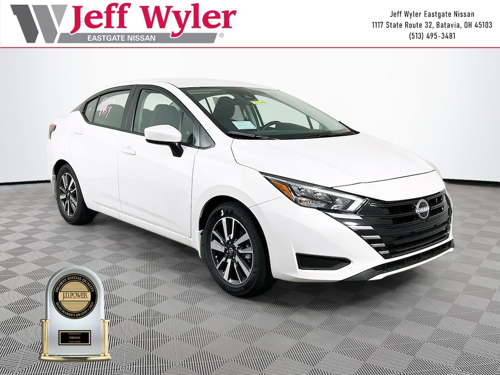 Aspen White Tricoat 2025 Nissan Versa 1.6 SV 1.6L I4 DOHC 16V FWD CVT 32/40 City/Highway MPG Jeff Wyler Eastgate Auto Mall is honored to offer this wonderful 2025 Nissan Versa 1.6 SV in Aspen White Tricoat. Well equipped with: Trunk Package (Shopping Bag Hooks and Trunk Net), 16" Aluminum Alloy Wheels, 4 Speakers, ABS brakes, Air Conditioning, Alloy wheels, Apple CarPlay/Android Auto, Auto High-beam Headlights, Blind Spot Warning, Brake assist, Bumpers: body-color, Carpeted Floor Mats & Trunk Mat (5-Piece Set), Delay-off headlights, Driver door bin, Driver vanity mirror, Dual front impact airbags, Dual front side impact airbags, Electronic Stability Control, Front anti-roll bar, Front Bucket Seats, Front Center Armrest, Front reading lights, Front wheel independent suspension, Fully automatic headlights, Heated door mirrors, Illuminated entry, Knee airbag, Low tire pressure warning, Occupant sensing airbag, Outside temperature display, Overhead airbag, Panic alarm, Passenger door bin, Passenger vanity mirror, Power door mirrors, Power steering, Power windows, Premium Paint, Radio data system, Radio: AM/FM Audio System, Rear Parking Sensors, Rear side impact airbag, Rear window defroster, Remote keyless entry, Speed control, Splash Guards, Split folding rear seat, Steering wheel mounted audio controls, Tachometer, Telescoping steering wheel, Tilt steering wheel, Traction control, Trip computer, Upgraded Cloth Seat Trim, and Variably intermittent wipers. 32/40 City/Highway MPG Price includes: $750 - Nissan MY25 Versa Bonus Cash (All Markets) - December. Exp. 01/05/2026