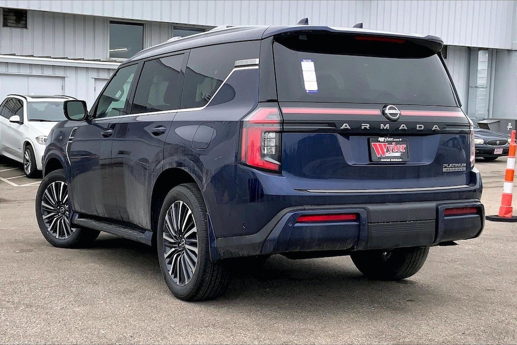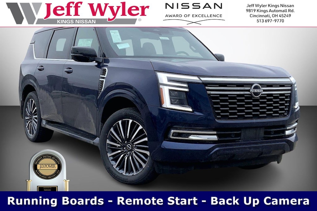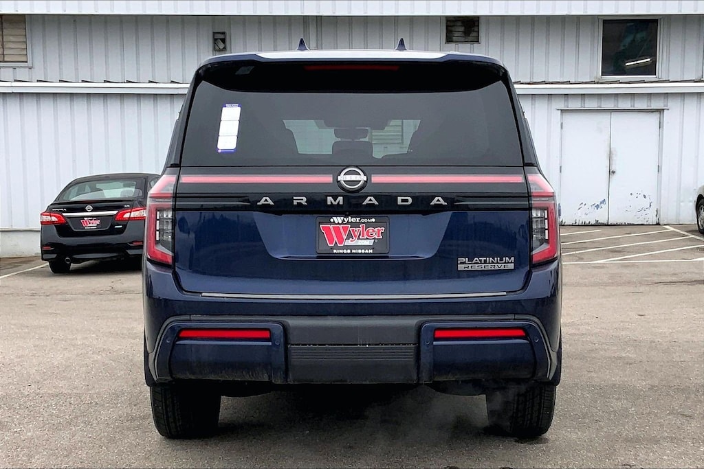 $6,854 off MSRP! Jeff Wyler Kings Nissan is delighted to offer this stunning 2026 Nissan Armada Platinum Reserve in Deep Ocean Blue Pearl. Well equipped with: Accent Package (Illuminated Cargo Scuff Plates), Convenience Package, 4WD, 12 Speakers, 3rd row seats: split-bench, 4-Wheel Disc Brakes, ABS brakes, Adaptive suspension, Air Conditioning, Alloy wheels, AM/FM radio: SiriusXM w/360L, Anti-whiplash front head restraints, Apple CarPlay/Android Auto, Auto High-beam Headlights, Auto tilt-away steering wheel, Auto-dimming door mirrors, Auto-dimming Rear-View mirror, Auto-leveling suspension, Automatic temperature control, Brake assist, Bumpers: body-color, Carpeted Floor Mats with Captain Chairs, Center Front Spoiler, Climate Controlled Heated and Ventilated Front Seats, Compass, Cross Bars, Delay-off headlights, Driver door bin, Driver vanity mirror, Dual front impact airbags, Dual front side impact airbags, Electronic Stability Control, Emergency communication system: NissanConnect Services, Four wheel independent suspension, Front anti-roll bar, Front Bucket Seats, Front Center Armrest, Front dual zone A/C, Front fog lights, Front reading lights, Fully automatic headlights, Garage door transmitter: HomeLink, Genuine wood dashboard insert, Heads-Up Display, Heated door mirrors, Heated front seats, Heated rear seats, Heated steering wheel, HVAC memory, Illuminated entry, Illuminated Kick Plates, Knee airbag, Leather steering wheel, Low tire pressure warning, Memory seat, Navigation system: Google Maps, Occupant sensing airbag, Outside temperature display, Overhead airbag, Overhead console, Panic alarm, Passenger door bin, Passenger vanity mirror, Power door mirrors, Power driver seat, Power Liftgate, Power moonroof, Power passenger seat, Power steering, Power windows, ProPILOT Assist 2.1, Quilted Leather Seat Trim, Radio: NissanConnect with SiriusXM 360L, Rain sensing wipers, Rear air conditioning, Rear anti-roll bar, Rear Bumper Protector, Rear reading lights, Rear window defroster, Rear window wiper, Reclining 3rd row seat, Remote keyless entry, Security system, Speed control, Speed-sensing steering, Speed-Sensitive Wipers, Splash Guards, Split folding rear seat, Spoiler, Steering wheel memory, Steering wheel mounted audio controls, Tachometer, Telescoping steering wheel, Tilt steering wheel, Traction control, Trip computer, Turn signal indicator mirrors, Variably intermittent wipers, Ventilated front seats, Voltmeter, and Wheels: 22" x 8.5J Machined & Painted Alloy.Wyler Family First Package Includes: NanoCure Appearance Protection: Exterior & Interior Chemical Sealant Applied to Protect Against Environmental Hazards (7 Year Warranty Coverage). Pulse- Rear end Collision Avoidance System Theft Deterrent Strategy gives you 5 Years of Coverage against vehicle Theft, Offering up to a $5,000 benefit. Used vehicles 10 years of age or newer with less than 100,000 miles are eligible for the Wyler Assurance Program, but eligible vehicles must pass our reconditioning process and multi-point inspection. Provided the vehicle passes inspection, vehicles will be eligible for the 6 month/6,000 mile limited warranty. The 6 month/6,000 mile limited warranty is NOT available on AS-IS vehicles, wholesale vehicles, lease buyback/pass-thru vehicles or un-inspected vehicles. Note that this program can also apply to vehicles where the remaining factory coverage is less than 6 months or 6,000 miles. Please check the Federal Trade Commission (FTC) Buyers guide on the vehicle for full details as to whether or not warranty coverage may apply. Contact Dealer for additional details. The Wyler Assurance 6 month/6,000 Mile limited warranty ends 6 months from the date of the Retail Purchase Agreement (BUYERS ORDER) or when the vehicle's odometer registers 6,000 additional miles to the mileage listed on the BUYERS ORDER, whichever comes first. Your Deductible - The warranty holder on your contract pays the first $100 of each covered repair.