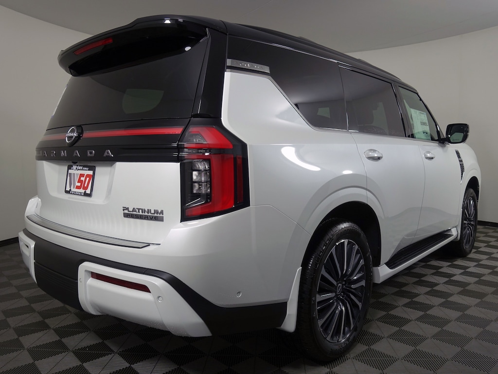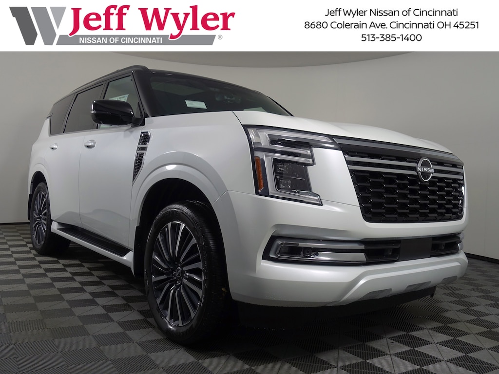 $6,848 off MSRP! Everest White Pearl/Black 2026 Nissan Armada Platinum Reserve 4WD 9-Speed Automatic Jeff Wyler Nissan of Cincinnati is pumped up to offer this good-looking 2026 Nissan Armada Platinum Reserve in Everest White Pearl/Black. Well equipped with: 4WD, 12 Speakers, 3rd row seats: split-bench, 4-Wheel Disc Brakes, ABS brakes, Adaptive suspension, Air Conditioning, Alloy wheels, AM/FM radio: SiriusXM w/360L, Anti-whiplash front head restraints, Apple CarPlay/Android Auto, Auto High-beam Headlights, Auto tilt-away steering wheel, Auto-dimming door mirrors, Auto-dimming Rear-View mirror, Auto-leveling suspension, Automatic temperature control, Brake assist, Bumpers: body-color, Carpeted Floor Mats with Captain Chairs, Climate Controlled Heated and Ventilated Front Seats, Compass, Cross Bars, Delay-off headlights, Driver door bin, Driver vanity mirror, Dual front impact airbags, Dual front side impact airbags, Electronic Stability Control, Emergency communication system: NissanConnect Services, Four wheel independent suspension, Front anti-roll bar, Front Bucket Seats, Front Center Armrest, Front dual zone A/C, Front fog lights, Front reading lights, Fully automatic headlights, Garage door transmitter: HomeLink, Genuine wood dashboard insert, Heads-Up Display, Heated door mirrors, Heated front seats, Heated rear seats, Heated steering wheel, HVAC memory, Illuminated entry, Illuminated Kick Plates, Knee airbag, Leather steering wheel, Low tire pressure warning, Memory seat, Navigation system: Google Maps, Occupant sensing airbag, Outside temperature display, Overhead airbag, Overhead console, Panic alarm, Passenger door bin, Passenger vanity mirror, Power door mirrors, Power driver seat, Power Liftgate, Power moonroof, Power passenger seat, Power steering, Power windows, ProPILOT Assist 2.1, Quilted Leather Seat Trim, Radio: NissanConnect with SiriusXM 360L, Rain sensing wipers, Rear air conditioning, Rear anti-roll bar, Rear Bumper Protector, Rear reading lights, Rear window defroster, Rear window wiper, Reclining 3rd row seat, Remote keyless entry, Security system, Speed control, Speed-sensing steering, Speed-Sensitive Wipers, Splash Guards, Split folding rear seat, Spoiler, Steering wheel memory, Steering wheel mounted audio controls, Super Premium Paint and 2-Tone Roof, Tachometer, Telescoping steering wheel, Tilt steering wheel, Traction control, Trip computer, Turn signal indicator mirrors, Variably intermittent wipers, Ventilated front seats, Voltmeter, and Wheels: 22" x 8.5J Machined & Painted Alloy. 3.5L DOHC 4WD.Wyler Family First Package Includes: NanoCure Appearance Protection: Exterior & Interior Chemical Sealant Applied to Protect Against Environmental Hazards (7 Year Warranty Coverage). Pulse- Rear end Collision Avoidance System Theft Deterrent Strategy gives you 5 Years of Coverage against vehicle Theft, Offering up to a $5,000 benefit.