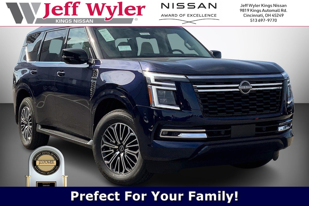 $6,234 off MSRP! Jeff Wyler Kings Nissan is very proud to offer this great 2026 Nissan Armada Platinum in Deep Ocean Blue Pearl. Well equipped with: ProPILOT Assist 2.1 (Heads-Up Display), 4WD, 12 Speakers, 3rd row seats: split-bench, 4-Wheel Disc Brakes, ABS brakes, Air Conditioning, Alloy wheels, AM/FM radio: SiriusXM w/360L, Anti-whiplash front head restraints, Apple CarPlay/Android Auto, Auto High-beam Headlights, Auto tilt-away steering wheel, Auto-dimming door mirrors, Auto-dimming Rear-View mirror, Auto-leveling suspension, Automatic temperature control, Brake assist, Bumpers: body-color, Carpeted Floor Mats with Captain Chairs, Center Front Spoiler, Climate Controlled Heated and Ventilated Front Seats, Compass, Cross Bars, Delay-off headlights, Driver door bin, Driver vanity mirror, Dual front impact airbags, Dual front side impact airbags, Electronic Stability Control, Emergency communication system: NissanConnect Services, Four wheel independent suspension, Front anti-roll bar, Front Bucket Seats, Front Center Armrest, Front dual zone A/C, Front fog lights, Front reading lights, Fully automatic headlights, Garage door transmitter: HomeLink, Genuine wood dashboard insert, Heated door mirrors, Heated front seats, Heated rear seats, Heated steering wheel, HVAC memory, Illuminated entry, Illuminated Kick Plates, Knee airbag, Leather steering wheel, Low tire pressure warning, Memory seat, Navigation system: Google Maps, Occupant sensing airbag, Outside temperature display, Overhead airbag, Overhead console, Panic alarm, Passenger door bin, Passenger vanity mirror, Power door mirrors, Power driver seat, Power Liftgate, Power moonroof, Power passenger seat, Power steering, Power windows, Quilted Leather Seat Trim, Radio: NissanConnect with SiriusXM 360L, Rain sensing wipers, Rear air conditioning, Rear anti-roll bar, Rear Bumper Protector, Rear reading lights, Rear window defroster, Rear window wiper, Reclining 3rd row seat, Remote keyless entry, Security system, Speed control, Speed-sensing steering, Speed-Sensitive Wipers, Splash Guards, Split folding rear seat, Spoiler, Steering wheel memory, Steering wheel mounted audio controls, Tachometer, Telescoping steering wheel, Tilt steering wheel, Traction control, Trip computer, Turn signal indicator mirrors, USB Charging Cables, Variably intermittent wipers, Ventilated front seats, Voltmeter, and Wheels: 20" x 8.5J Machined and Painted Alloy.Wyler Family First Package Includes: NanoCure Appearance Protection: Exterior & Interior Chemical Sealant Applied to Protect Against Environmental Hazards (7 Year Warranty Coverage). Pulse- Rear end Collision Avoidance System Theft Deterrent Strategy gives you 5 Years of Coverage against vehicle Theft, Offering up to a $5,000 benefit. Used vehicles 10 years of age or newer with less than 100,000 miles are eligible for the Wyler Assurance Program, but eligible vehicles must pass our reconditioning process and multi-point inspection. Provided the vehicle passes inspection, vehicles will be eligible for the 6 month/6,000 mile limited warranty. The 6 month/6,000 mile limited warranty is NOT available on AS-IS vehicles, wholesale vehicles, lease buyback/pass-thru vehicles or un-inspected vehicles. Note that this program can also apply to vehicles where the remaining factory coverage is less than 6 months or 6,000 miles. Please check the Federal Trade Commission (FTC) Buyers guide on the vehicle for full details as to whether or not warranty coverage may apply. Contact Dealer for additional details. The Wyler Assurance 6 month/6,000 Mile limited warranty ends 6 months from the date of the Retail Purchase Agreement (BUYERS ORDER) or when the vehicle's odometer registers 6,000 additional miles to the mileage listed on the BUYERS ORDER, whichever comes first. Your Deductible - The warranty holder on your contract pays the first $100 of each covered repair.