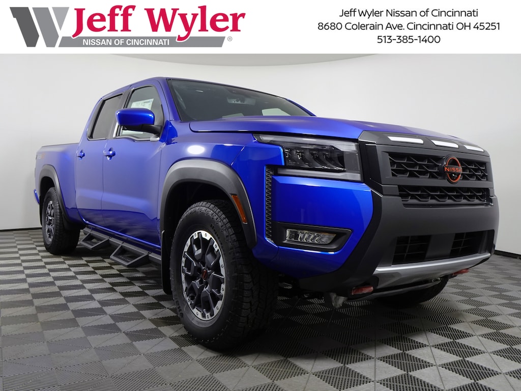 $5,132 off MSRP! Bluestone Pearl 2026 Nissan Frontier PRO-4X 4WD 9-Speed Automatic with Overdrive Jeff Wyler Nissan of Cincinnati is excited to offer this superb 2026 Nissan Frontier PRO-4X in Bluestone Pearl. Well equipped with: PRO Premium Package (Auto-Dimming Mirror, Auto-Tilt & Slide Sunroof w/Manual Shade, Fender Premium Audio System w/10 Speakers, HomeLink UGDO, Leather Seat Trim, Nissan Door-to-Door Navigation, Partial Under-Seat Storage Delete, and Traffic Sign Recognition (TSR)), PRO-4X Convenience Package (Heated Steering Wheel, Intelligent Around View Monitor (I-AVM), and Wireless Charging for Personal Devices), 4WD, 17" Painted Alloy Wheels, 2-Tone Beadlock Style Wheel, 3.692 Axle Ratio, 4-Wheel Disc Brakes, 6 Speakers, ABS brakes, Air Conditioning, Alloy wheels, AM/FM radio: SiriusXM, Anti-whiplash front head restraints, Auto High-beam Headlights, Automatic temperature control, Blind Spot Warning, Brake assist, Bumpers: body-color, Delay-off headlights, Driver door bin, Driver vanity mirror, Dual front impact airbags, Dual front side impact airbags, Electronic Stability Control, Electronic Tailgate Lock, Emergency communication system, Essentials Kit, Front anti-roll bar, Front Bucket Seats, Front Center Armrest, Front dual zone A/C, Front fog lights, Front reading lights, Front wheel independent suspension, Fully automatic headlights, Grille Accent Lighting, Heated Front Bucket Seats, Heated front seats, Heated steering wheel, Illuminated entry, Knee airbag, Leather steering wheel, Low tire pressure warning, Mud Flaps, Occupant sensing airbag, Off-Road Style Step Rails, Overhead airbag, Overhead console, Panic alarm, Passenger door bin, Passenger vanity mirror, Power door mirrors, Power driver seat, Power passenger seat, Power steering, Power windows, Premium Paint, PRO Embroidered Premium Cloth Seat Trim, Radio data system, Radio: SXM/AM/FM/AUX/USB Audio System, Rear anti-roll bar, Rear seat center armrest, Rear side impact airbag, Rear step bumper, Remote keyless entry, Security system, Speed control, Speed-sensing steering, Split folding rear seat, Steering wheel mounted audio controls, Tachometer, Telescoping steering wheel, Tilt steering wheel, Traction control, Trip computer, Variably intermittent wipers, Voltmeter, and Wireless Apple CarPlay/Wireless Android Auto. 3.8L DI DOHC 24V V6 4WD.Wyler Family First Package Includes: NanoCure Appearance Protection: Exterior & Interior Chemical Sealant Applied to Protect Against Environmental Hazards (7 Year Warranty Coverage). Pulse- Rear end Collision Avoidance System Theft Deterrent Strategy gives you 5 Years of Coverage against vehicle Theft, Offering up to a $5,000 benefit. Price includes: $2000 - Nissan Customer Cash. Exp. 12/01/2025