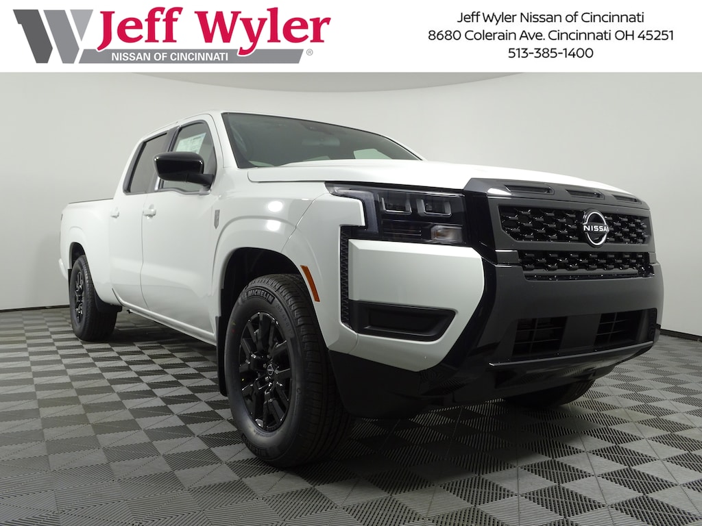 $2,978 off MSRP! Glacier White 2026 Nissan Frontier SV RWD 9-Speed Automatic with Overdrive Jeff Wyler Nissan of Cincinnati is pumped up to offer this fantastic-looking 2026 Nissan Frontier SV in Glacier White. Well equipped with: Dark Armor Package (Dark FRONTIER Tailgate Lettering, Dark Grill Surround/Mesh/Inner Fascia, Dark Mirror Caps, and Wheels: 17" Dark), SV Convenience Package (120V Power Outlet in Bed, 120V Power Outlet in Rear Center Console, Bed Under-Rail Lighting, Heated Front Seats, Heated Leather Steering Wheel, Heated Outside Mirrors, HVAC - Dual-Zone Front Auto A/C, I-Key w/Request Switches on O/S Handles, Locking Glove Box, Remote Engine Starter, Spray-In Bedliner, Tow/Haul Mode Switch, Trailer Hitch w/Wiring Harness, and Utili-Track System), 17" Alloy Wheels, 3.692 Axle Ratio, 4-Wheel Disc Brakes, 6 Speakers, ABS brakes, Air Conditioning, Alloy wheels, AM/FM radio: SiriusXM, Anti-whiplash front head restraints, Auto High-beam Headlights, Blind Spot Warning, Brake assist, Bumpers: body-color, Carpeted Floor Mats, Delay-off headlights, Driver door bin, Driver vanity mirror, Dual front impact airbags, Dual front side impact airbags, Electronic Stability Control, Electronic Tailgate Lock, Emergency communication system, Front anti-roll bar, Front Bucket Seats, Front Center Armrest, Front reading lights, Front wheel independent suspension, Fully automatic headlights, Heated door mirrors, Illuminated entry, Knee airbag, Low tire pressure warning, Occupant sensing airbag, Overhead airbag, Overhead console, Panic alarm, Passenger door bin, Passenger vanity mirror, Power door mirrors, Power driver seat, Power steering, Power windows, Premium Cloth Seat Trim, Radio data system, Radio: SXM/AM/FM/AUX/USB Audio System, Rear anti-roll bar, Rear seat center armrest, Rear side impact airbag, Rear step bumper, Remote keyless entry, Security system, Speed control, Speed-sensing steering, Splash Guards, Split folding rear seat, Steering wheel mounted audio controls, Tachometer, Telescoping steering wheel, Tilt steering wheel, Traction control, Trip computer, Variably intermittent wipers, Voltmeter, and Wireless Apple CarPlay/Wireless Android Auto. 3.8L DI DOHC 24V V6Recent Arrival!Wyler Family First Package Includes: NanoCure Appearance Protection: Exterior & Interior Chemical Sealant Applied to Protect Against Environmental Hazards (7 Year Warranty Coverage). Pulse- Rear end Collision Avoidance System Theft Deterrent Strategy gives you 5 Years of Coverage against vehicle Theft, Offering up to a $5,000 benefit. Price includes: $2000 - Nissan Customer Cash. Exp. 11/03/2025