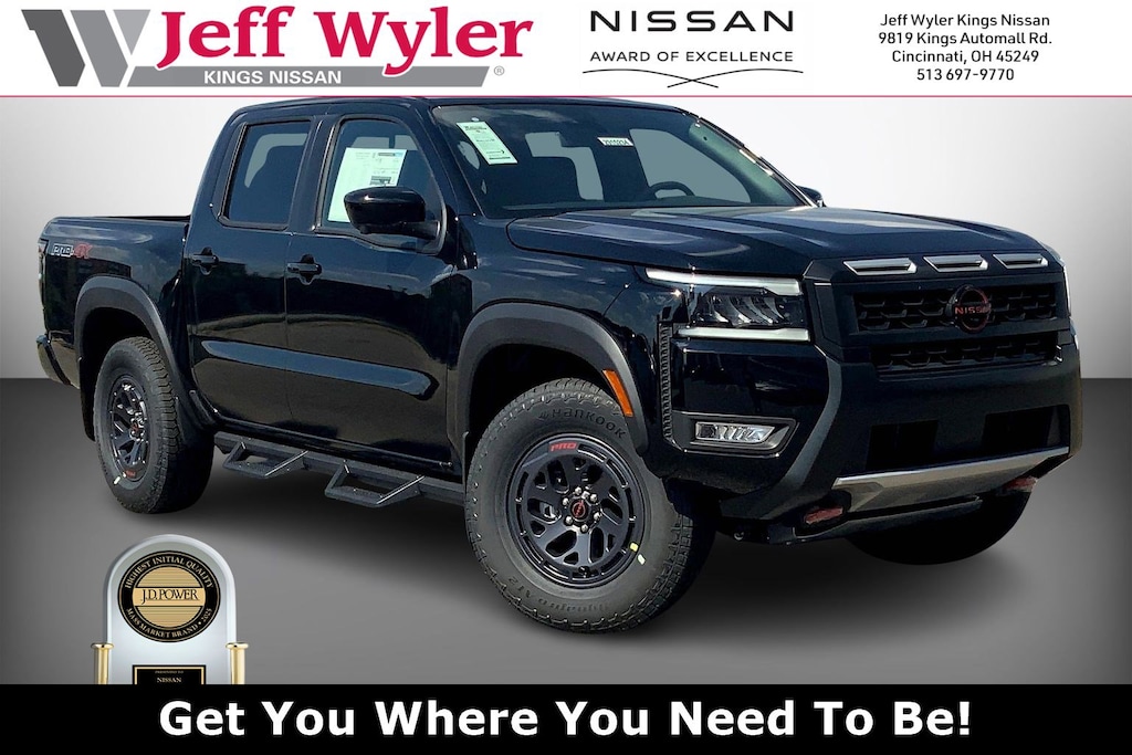 $5,478 off MSRP! Jeff Wyler Kings Nissan is honored to offer this gorgeous-looking 2026 Nissan Frontier PRO-4X in Super Black. Well equipped with: Black Accent Package, PRO Premium Package (Auto-Dimming Mirror, Auto-Tilt & Slide Sunroof w/Manual Shade, Fender Premium Audio System w/10 Speakers, HomeLink UGDO, Leather Seat Trim, Nissan Door-to-Door Navigation, Partial Under-Seat Storage Delete, and Traffic Sign Recognition (TSR)), PRO-4X Convenience Package (Heated Steering Wheel, Intelligent Around View Monitor (I-AVM), and Wireless Charging for Personal Devices), Tow Package (T11), 4WD, 17" Painted Alloy Wheels, 3.692 Axle Ratio, 4-Wheel Disc Brakes, 6 Speakers, ABS brakes, Air Conditioning, Alloy wheels, AM/FM radio: SiriusXM, Anti-whiplash front head restraints, Auto High-beam Headlights, Automatic temperature control, Blind Spot Warning, Brake assist, Bumpers: body-color, Delay-off headlights, Driver door bin, Driver vanity mirror, Dual front impact airbags, Dual front side impact airbags, Electronic Stability Control, Electronic Tailgate Lock, Emergency communication system, Essentials Kit, Front anti-roll bar, Front Bucket Seats, Front Center Armrest, Front dual zone A/C, Front fog lights, Front reading lights, Front wheel independent suspension, Fully automatic headlights, Grille Accent Lighting, Heated Front Bucket Seats, Heated front seats, Heated steering wheel, Illuminated entry, Knee airbag, Leather steering wheel, Low tire pressure warning, Mud Flaps, Occupant sensing airbag, Off-Road Style Step Rails, Overhead airbag, Overhead console, Panic alarm, Passenger door bin, Passenger vanity mirror, Power door mirrors, Power driver seat, Power passenger seat, Power steering, Power windows, PRO Embroidered Premium Cloth Seat Trim, PRO-4X Carpeted Floor Mats, Radio data system, Radio: SXM/AM/FM/AUX/USB Audio System, Rear anti-roll bar, Rear seat center armrest, Rear side impact airbag, Rear step bumper, Remote keyless entry, Security system, Speed control, Speed-sensing steering, Split folding rear seat, Steering wheel mounted audio controls, Tachometer, Telescoping steering wheel, Tilt steering wheel, Traction control, Trip computer, Variably intermittent wipers, Voltmeter, and Wireless Apple CarPlay/Wireless Android Auto.Wyler Family First Package Includes: NanoCure Appearance Protection: Exterior & Interior Chemical Sealant Applied to Protect Against Environmental Hazards (7 Year Warranty Coverage). Pulse- Rear end Collision Avoidance System Theft Deterrent Strategy gives you 5 Years of Coverage against vehicle Theft, Offering up to a $5,000 benefit. Used vehicles 10 years of age or newer with less than 100,000 miles are eligible for the Wyler Assurance Program, but eligible vehicles must pass our reconditioning process and multi-point inspection. Provided the vehicle passes inspection, vehicles will be eligible for the 6 month/6,000 mile limited warranty. The 6 month/6,000 mile limited warranty is NOT available on AS-IS vehicles, wholesale vehicles, lease buyback/pass-thru vehicles or un-inspected vehicles. Note that this program can also apply to vehicles where the remaining factory coverage is less than 6 months or 6,000 miles. Please check the Federal Trade Commission (FTC) Buyers guide on the vehicle for full details as to whether or not warranty coverage may apply. Contact Dealer for additional details. The Wyler Assurance 6 month/6,000 Mile limited warranty ends 6 months from the date of the Retail Purchase Agreement (BUYERS ORDER) or when the vehicle's odometer registers 6,000 additional miles to the mileage listed on the BUYERS ORDER, whichever comes first. Your Deductible - The warranty holder on your contract pays the first $100 of each covered repair. Price includes: $2500 - Nissan Customer Cash. Exp. 02/02/2026
