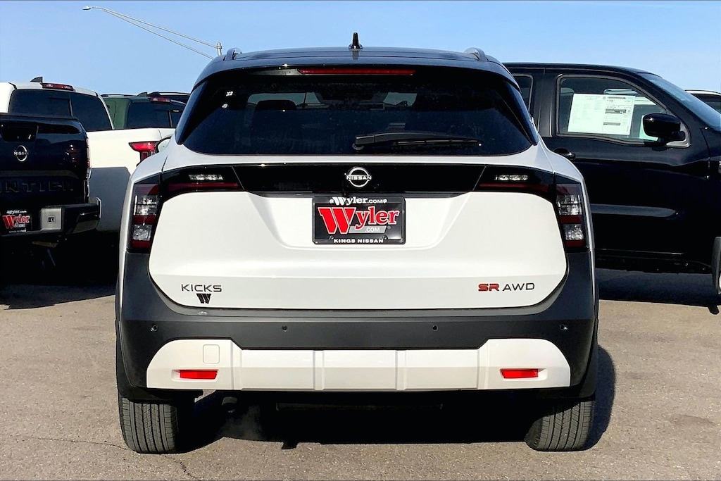 $2,531 off MSRP! Jeff Wyler Kings Nissan is delighted to offer this beautiful 2026 Nissan Kicks SR in Aspen White Tricoat/Super Black. Well equipped with: Cold Weather Package (Heated Front Seats, Heated Mirrors, and Rear Floor Heater Ducts), Illumination Package (Illuminated Cargo Scuff Plate and Illuminated Kickplates), SR Premium Package (Bose 10 -Speaker Audio, Driver Seat-Mounted Supplemental Air Bag, Heated Steering Wheel, and Panoramic Moonroof), 17" Alloy Wheels, 19" Alloy Wheels, 2-Tone Premium Paint, 4-Wheel Disc Brakes, 6 Speakers, ABS brakes, Air Conditioning, Alloy wheels, AM/FM radio, Auto High-beam Headlights, Automatic temperature control, AWD Cargo Mat, Brake assist, Bumpers: body-color, Carpeted Floor Mats, Delay-off headlights, Driver door bin, Driver vanity mirror, Dual front impact airbags, Dual front side impact airbags, Electronic Stability Control, Emergency communication system: NissanConnect Services, Exterior Parking Camera Rear, Four wheel independent suspension, Front anti-roll bar, Front Bucket Seats, Front Center Armrest, Front reading lights, Fully automatic headlights, Garage door transmitter: myQ Connected Garage, Illuminated entry, Knee airbag, Leather Shift Knob, Leather steering wheel, Low tire pressure warning, NissanConnect featuring Apple CarPlay and Android Auto, Occupant sensing airbag, Outside temperature display, Overhead airbag, Overhead console, Panic alarm, Passenger door bin, Passenger vanity mirror, Power door mirrors, Power steering, Power windows, Radio data system, Radio: AM/FM/SiriusXM Audio System, Rear anti-roll bar, Rear reading lights, Rear seat center armrest, Rear side impact airbag, Rear window defroster, Rear window wiper, Remote keyless entry, Security system, Speed control, Speed-sensing steering, Splash Guards, Split folding rear seat, Spoiler, Sport Leatherette w/Cloth Insert Seat Trim, Sport steering wheel, Steering wheel mounted audio controls, Tachometer, Telescoping steering wheel, Tilt steering wheel, Traction control, Trip computer, Turn signal indicator mirrors, and Variably intermittent wipers. 27/34 City/Highway MPGWyler Family First Package Includes: NanoCure Appearance Protection: Exterior & Interior Chemical Sealant Applied to Protect Against Environmental Hazards (7 Year Warranty Coverage). Pulse- Rear end Collision Avoidance System Theft Deterrent Strategy gives you 5 Years of Coverage against vehicle Theft, Offering up to a $5,000 benefit. Used vehicles 10 years of age or newer with less than 100,000 miles are eligible for the Wyler Assurance Program, but eligible vehicles must pass our reconditioning process and multi-point inspection. Provided the vehicle passes inspection, vehicles will be eligible for the 6 month/6,000 mile limited warranty. The 6 month/6,000 mile limited warranty is NOT available on AS-IS vehicles, wholesale vehicles, lease buyback/pass-thru vehicles or un-inspected vehicles. Note that this program can also apply to vehicles where the remaining factory coverage is less than 6 months or 6,000 miles. Please check the Federal Trade Commission (FTC) Buyers guide on the vehicle for full details as to whether or not warranty coverage may apply. Contact Dealer for additional details. The Wyler Assurance 6 month/6,000 Mile limited warranty ends 6 months from the date of the Retail Purchase Agreement (BUYERS ORDER) or when the vehicle's odometer registers 6,000 additional miles to the mileage listed on the BUYERS ORDER, whichever comes first. Your Deductible - The warranty holder on your contract pays the first $100 of each covered repair. Price includes: $1000 - Nissan Customer Cash. Exp. 03/02/2026