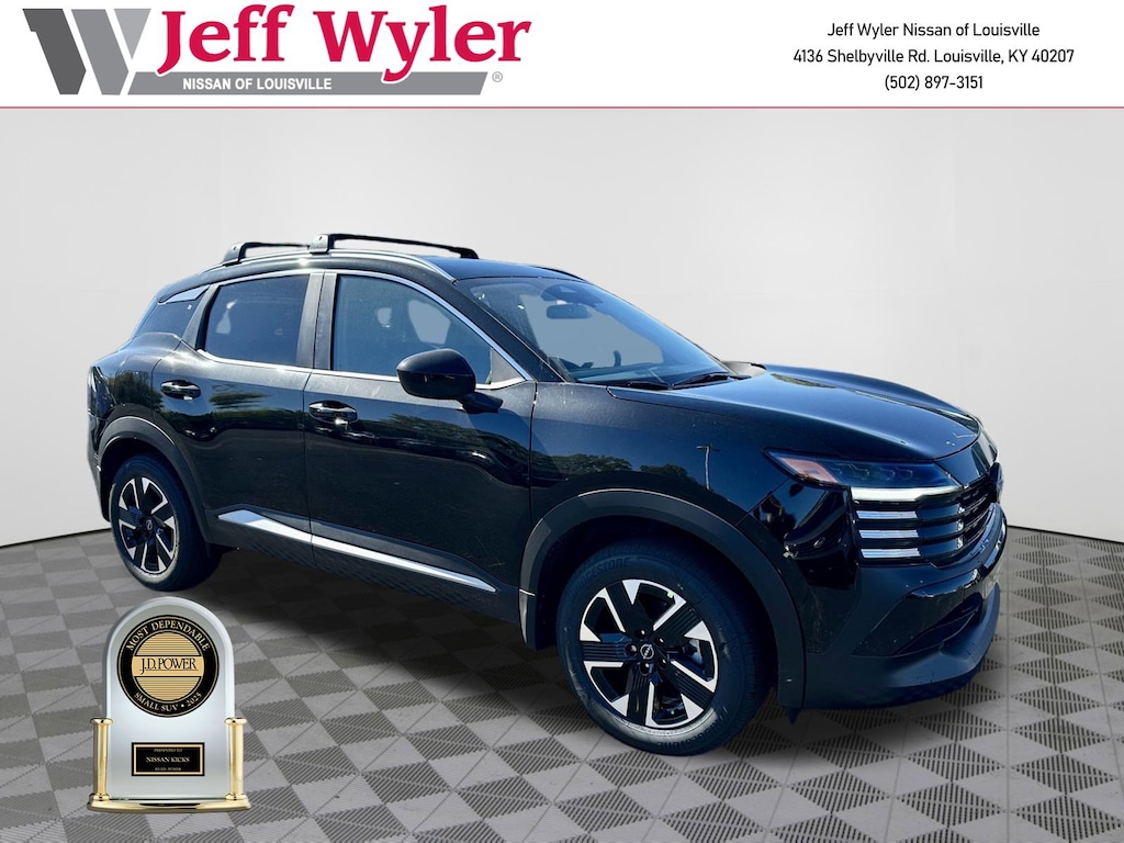 Jeff Wyler Nissan of Louisville is honored to offer this good-looking 2026 Nissan Kicks SV in Super Black. Well equipped with: Cold Weather Package (Heated Front Seats, Heated Mirrors, and Rear Floor Heater Ducts), 17" Alloy Wheels, 4 Speakers, 4-Wheel Disc Brakes, ABS brakes, Air Conditioning, Alloy wheels, AM/FM radio, Auto High-beam Headlights, Automatic temperature control, Blind Spot Warning, Brake assist, Bumpers: body-color, Carpeted Floor Mats, Cloth Seat Trim, Crossbars, Driver door bin, Driver vanity mirror, Dual front impact airbags, Dual front side impact airbags, Electronic Stability Control, Emergency communication system, Exterior Parking Camera Rear, Four wheel independent suspension, Front anti-roll bar, Front Bucket Seats, Front Center Armrest, Front reading lights, Fully automatic headlights, Illuminated entry, Knee airbag, Low tire pressure warning, NissanConnect featuring Apple CarPlay and Android Auto, Occupant sensing airbag, Outside temperature display, Overhead airbag, Panic alarm, Passenger door bin, Passenger vanity mirror, Power door mirrors, Power steering, Power windows, Radio data system, Radio: AM/FM/SiriusXM Audio System, Rear anti-roll bar, Rear reading lights, Rear side impact airbag, Rear window defroster, Rear window wiper, Remote keyless entry, Security system, Speed control, Speed-sensing steering, Splash Guards, Split folding rear seat, Spoiler, Sport steering wheel, Steering wheel mounted audio controls, Tachometer, Telescoping steering wheel, Tilt steering wheel, Traction control, Trip computer, and Variably intermittent wipers.2026 Nissan Kicks SV Super Black Wyler Family First Package Includes: NanoCure Appearance Protection: Exterior & Interior Chemical Sealant Applied to Protect Against Environmental Hazards (7 Year Warranty Coverage). Pulse- Rear end Collision Avoidance System Theft Deterrent Strategy gives you 5 Years of Coverage against vehicle Theft, Offering up to a $5,000 benefit. Customer's May Not Qualify for All Rebates. Prices Do Not Include Tax, License. $1000 - Nissan Customer Cash. Exp. 01/05/2026 $500 - Nissan MWR MY26 Kicks Bonus Cash - December. Exp. 01/05/2026