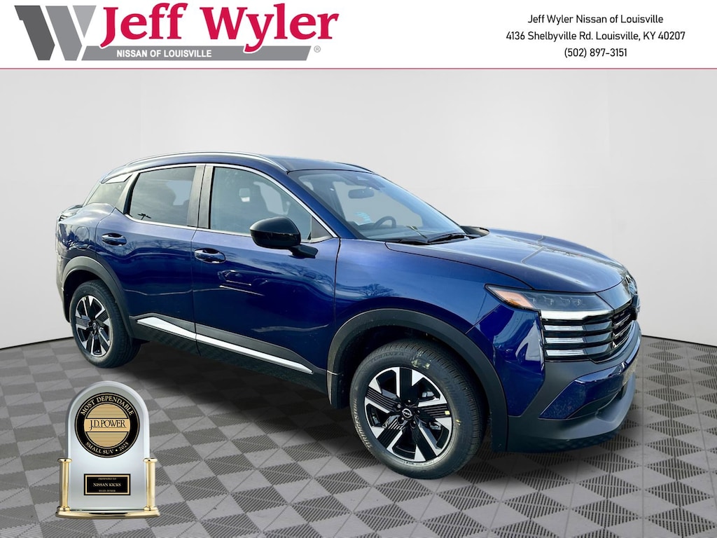 Jeff Wyler Nissan of Louisville is excited to offer this handsome 2026 Nissan Kicks SV in Deep Blue Pearl. Well equipped with: Cold Weather Package (Heated Front Seats, Heated Mirrors, and Rear Floor Heater Ducts), SV Premium Package (Illuminated Driver & Passenger Sun Visors, Panoramic Moonroof, and Sunglass Holder), 17" Alloy Wheels, 4 Speakers, 4-Wheel Disc Brakes, ABS brakes, Air Conditioning, Alloy wheels, AM/FM radio, Auto High-beam Headlights, Automatic temperature control, Blind Spot Warning, Brake assist, Bumpers: body-color, Carpeted Floor Mats, Cloth Seat Trim, Driver door bin, Driver vanity mirror, Dual front impact airbags, Dual front side impact airbags, Electronic Stability Control, Emergency communication system, Exterior Parking Camera Rear, Four wheel independent suspension, Front anti-roll bar, Front Bucket Seats, Front Center Armrest, Front reading lights, Fully automatic headlights, Illuminated entry, Knee airbag, Low tire pressure warning, NissanConnect featuring Apple CarPlay and Android Auto, Occupant sensing airbag, Outside temperature display, Overhead airbag, Panic alarm, Passenger door bin, Passenger vanity mirror, Power door mirrors, Power steering, Power windows, Radio data system, Radio: AM/FM/SiriusXM Audio System, Rear anti-roll bar, Rear reading lights, Rear side impact airbag, Rear window defroster, Rear window wiper, Remote keyless entry, Security system, Speed control, Speed-sensing steering, Splash Guards, Split folding rear seat, Spoiler, Sport steering wheel, Steering wheel mounted audio controls, Tachometer, Telescoping steering wheel, Tilt steering wheel, Traction control, Trip computer, and Variably intermittent wipers.2026 Nissan Kicks SV Deep Blue Pearl Wyler Family First Package Includes: NanoCure Appearance Protection: Exterior & Interior Chemical Sealant Applied to Protect Against Environmental Hazards (7 Year Warranty Coverage). Pulse- Rear end Collision Avoidance System Theft Deterrent Strategy gives you 5 Years of Coverage against vehicle Theft, Offering up to a $5,000 benefit. Customer's May Not Qualify for All Rebates. Prices Do Not Include Tax, License. $1000 - Nissan Customer Cash. Exp. 02/02/2026 $500 - Nissan MWR MY26 Kicks Bonus Cash - January . Exp. 02/02/2026