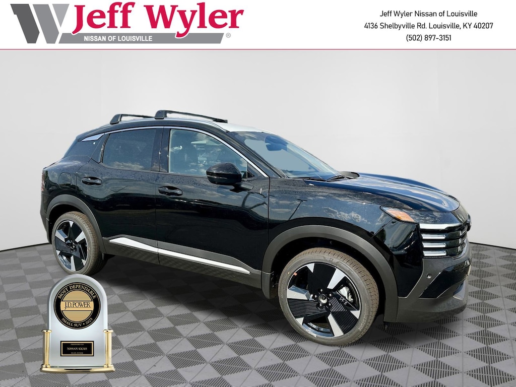 Jeff Wyler Nissan of Louisville is pleased to offer this stunning 2026 Nissan Kicks SR in Super Black. Well equipped with: Cold Weather Package (Heated Front Seats, Heated Mirrors, and Rear Floor Heater Ducts), 17" Alloy Wheels, 19" Alloy Wheels, 4-Wheel Disc Brakes, 6 Speakers, ABS brakes, Air Conditioning, Alloy wheels, AM/FM radio, Auto High-beam Headlights, Automatic temperature control, Brake assist, Bumpers: body-color, Carpeted Floor Mats, Crossbars, Delay-off headlights, Driver door bin, Driver vanity mirror, Dual front impact airbags, Dual front side impact airbags, Electronic Stability Control, Emergency communication system: NissanConnect Services, Exterior Parking Camera Rear, Four wheel independent suspension, Front anti-roll bar, Front Bucket Seats, Front Center Armrest, Front reading lights, Fully automatic headlights, Garage door transmitter: myQ Connected Garage, Illuminated entry, Knee airbag, Leather Shift Knob, Leather steering wheel, Low tire pressure warning, NissanConnect featuring Apple CarPlay and Android Auto, Occupant sensing airbag, Outside temperature display, Overhead airbag, Overhead console, Panic alarm, Passenger door bin, Passenger vanity mirror, Power door mirrors, Power steering, Power windows, Radio data system, Radio: AM/FM/SiriusXM Audio System, Rear anti-roll bar, Rear reading lights, Rear seat center armrest, Rear side impact airbag, Rear window defroster, Rear window wiper, Remote keyless entry, Security system, Speed control, Speed-sensing steering, Splash Guards, Split folding rear seat, Spoiler, Sport Leatherette w/Cloth Insert Seat Trim, Sport steering wheel, Steering wheel mounted audio controls, Tachometer, Telescoping steering wheel, Tilt steering wheel, Traction control, Trip computer, Turn signal indicator mirrors, and Variably intermittent wipers.2026 Nissan Kicks SR Super Black Wyler Family First Package Includes: NanoCure Appearance Protection: Exterior & Interior Chemical Sealant Applied to Protect Against Environmental Hazards (7 Year Warranty Coverage). Pulse- Rear end Collision Avoidance System Theft Deterrent Strategy gives you 5 Years of Coverage against vehicle Theft, Offering up to a $5,000 benefit. Customer's May Not Qualify for All Rebates. Prices Do Not Include Tax, License. $1000 - Nissan Customer Cash. Exp. 01/05/2026 $500 - Nissan MWR MY26 Kicks Bonus Cash - December. Exp. 01/05/2026