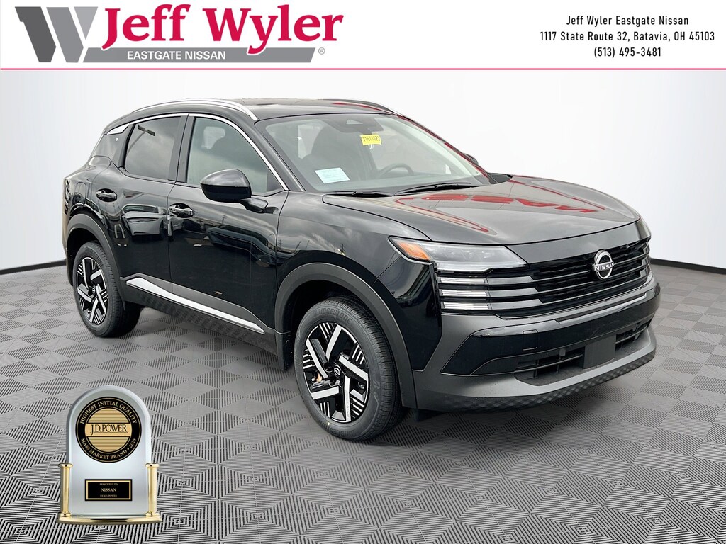 Super Black 2026 Nissan Kicks SV 2.0L DOHC FWD CVT with Xtronic 28/35 City/Highway MPG Jeff Wyler Eastgate Auto Mall is honored to offer this good-looking 2026 Nissan Kicks SV in Super Black. Well equipped with: Cold Weather Package (Heated Front Seats, Heated Mirrors, and Rear Floor Heater Ducts), SV Premium Package (Illuminated Driver & Passenger Sun Visors, Panoramic Moonroof, and Sunglass Holder), 4 Speakers, 4-Wheel Disc Brakes, ABS brakes, Air Conditioning, AM/FM radio, Auto High-beam Headlights, Automatic temperature control, Blind Spot Warning, Brake assist, Bumpers: body-color, Carpeted Floor Mats & Underfloor Protector, Cloth Seat Trim, Driver door bin, Driver vanity mirror, Dual front impact airbags, Dual front side impact airbags, Electronic Stability Control, Emergency communication system, Exterior Parking Camera Rear, Front anti-roll bar, Front Bucket Seats, Front Center Armrest, Front reading lights, Front wheel independent suspension, Fully automatic headlights, Illuminated entry, Knee airbag, Low tire pressure warning, NissanConnect featuring Apple CarPlay and Android Auto, Occupant sensing airbag, Outside temperature display, Overhead airbag, Panic alarm, Passenger door bin, Passenger vanity mirror, Power door mirrors, Power steering, Power windows, Radio data system, Radio: AM/FM/SiriusXM Audio System, Rear anti-roll bar, Rear reading lights, Rear side impact airbag, Rear window defroster, Rear window wiper, Remote keyless entry, Security system, Speed control, Speed-sensing steering, Splash Guards, Split folding rear seat, Spoiler, Sport steering wheel, Steering wheel mounted audio controls, Tachometer, Telescoping steering wheel, Tilt steering wheel, Traction control, Trip computer, Variably intermittent wipers, and Wheels: 17" Steel Flex w/Full Covers. 28/35 City/Highway MPG Price includes: $1000 - Nissan Customer Cash. Exp. 03/02/2026
