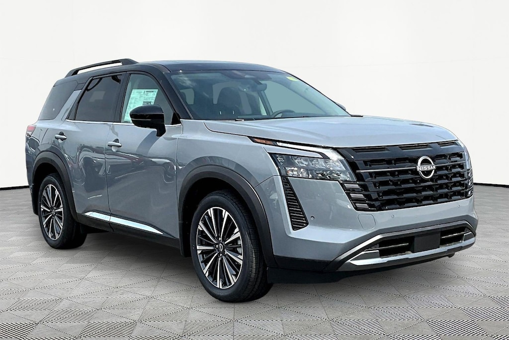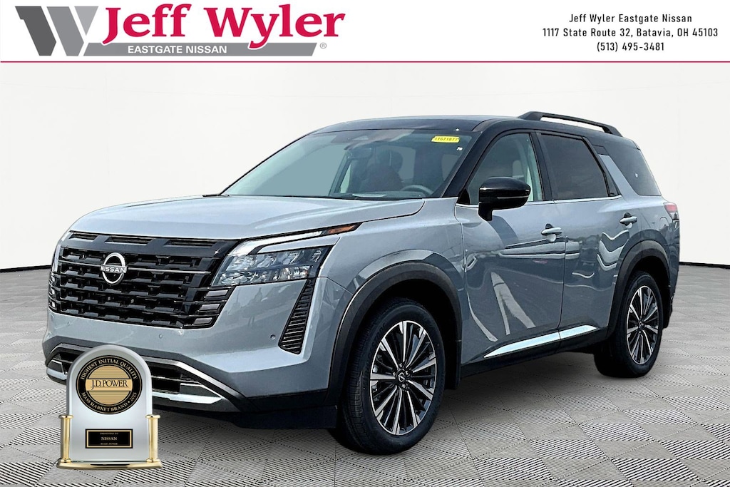Priced below KBB Fair Purchase Price! Boulder Gray/Super Black 2026 Nissan Pathfinder Platinum 3.5L V6 DOHC 4WD 9-Speed Automatic 20/25 City/Highway MPG Jeff Wyler Eastgate Auto Mall is very proud to offer this wonderful 2026 Nissan Pathfinder Platinum in Boulder Gray/Super Black. Well equipped with: 13 Speakers, 3rd row seats: bench, 4-Piece Black Splash Guards, 4-Wheel Disc Brakes, ABS brakes, Air Conditioning, Alloy wheels, AM/FM radio: SiriusXM w/360L, Auto High-beam Headlights, Auto tilt-away steering wheel, Auto-dimming Rear-View mirror, Automatic temperature control, Bench Seat Carpeted Floor Mats, Bodyside moldings, Bose Premium Audio System, Brake assist, Bumpers: body-color, Climate Controlled Front Bucket Seats, Delay-off headlights, Driver door bin, Driver vanity mirror, Dual front impact airbags, Dual front side impact airbags, Electronic Stability Control, Emergency communication system: NissanConnect Services, Four wheel independent suspension, Front anti-roll bar, Front Bucket Seats, Front Center Armrest, Front dual zone A/C, Front reading lights, Fully automatic headlights, Garage door transmitter: HomeLink, Heads-Up Display, Heated door mirrors, Heated front seats, Heated rear seats, Heated steering wheel, Illuminated entry, Knee airbag, Low tire pressure warning, Memory seat, NissanConnect featuring Apple CarPlay and Android Auto, Occupant sensing airbag, Outside temperature display, Overhead airbag, Overhead console, Panic alarm, Passenger door bin, Passenger vanity mirror, Power door mirrors, Power driver seat, Power Liftgate, Power moonroof, Power passenger seat, Power steering, Power windows, Premium Paint and 2-Tone Roof, Radio data system, Radio: AM/FM Audio System with NissanConnect, Rain sensing wipers, Rear air conditioning, Rear anti-roll bar, Rear reading lights, Rear seat center armrest, Rear side impact airbag, Rear window defroster, Rear window wiper, Reclining 3rd row seat, Remote keyless entry, Security system, Semi-Aniline Leather-Appointed Seating Surfaces, Speed control, Speed-sensing steering, Speed-Sensitive Wipers, Split folding rear seat, Spoiler, Steering wheel memory, Steering wheel mounted audio controls, Tachometer, Telescoping steering wheel, Tilt steering wheel, Traction control, Trip computer, Turn signal indicator mirrors, Variably intermittent wipers, Ventilated front seats, and Wheels: 20" Machined Alloy. Price includes: $3500 - Nissan Customer Cash. Exp. 05/04/2026