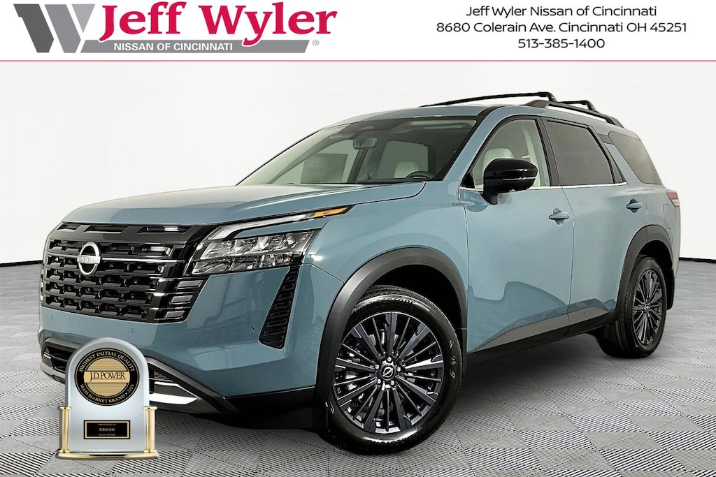 $6,878 off MSRP! Baltic Teal 2026 Nissan Pathfinder SL 4WD 9-Speed Automatic Jeff Wyler Nissan of Cincinnati is very proud to offer this attractive 2026 Nissan Pathfinder SL in Baltic Teal. Well equipped with: SL Premium Package (2nd Row Manual Sunshades, Bose Premium Audio System, Heated Rear Seats, Panoramic Moonroof, Tow Hitch Receiver and Harness, and Wheels: 20" Machined Alloy with Dark Metallic Gray Finish), 4WD, 18" Machined Alloy Wheels, 2nd-Row Captain Chairs, 3rd row seats: bench, 4-Piece Black Splash Guards, 4-Wheel Disc Brakes, 6 Speakers, ABS brakes, Air Conditioning, Alloy wheels, AM/FM radio: SiriusXM w/360L, Auto High-beam Headlights, Auto-dimming Rear-View mirror, Automatic temperature control, Brake assist, Bumpers: body-color, Captain's Chairs Carpeted Floor Mats, Cross Bars, Delay-off headlights, Driver door bin, Driver vanity mirror, Dual front impact airbags, Dual front side impact airbags, Electronic Stability Control, Emergency communication system: NissanConnect Services, Four wheel independent suspension, Front anti-roll bar, Front Bucket Seats, Front Center Armrest, Front dual zone A/C, Front reading lights, Fully automatic headlights, Garage door transmitter: HomeLink, Heated door mirrors, Heated Front Bucket Seats, Heated front seats, Heated steering wheel, Illuminated entry, Knee airbag, Low tire pressure warning, NissanConnect featuring Apple CarPlay and Android Auto, Occupant sensing airbag, Outside temperature display, Overhead airbag, Overhead console, Panic alarm, Passenger door bin, Passenger vanity mirror, Power door mirrors, Power driver seat, Power Liftgate, Power steering, Power windows, Premium Paint, Radio data system, Radio: AM/FM Audio System with NissanConnect, Rear air conditioning, Rear anti-roll bar, Rear reading lights, Rear seat center armrest, Rear side impact airbag, Rear window defroster, Rear window wiper, Reclining 3rd row seat, Remote keyless entry, Removable Center Console, Security system, Speed control, Speed-sensing steering, Split folding rear seat, Spoiler, Steering wheel mounted audio controls, Tachometer, TailorFit Appointed Seating Surfaces, Telescoping steering wheel, Tilt steering wheel, Traction control, Trip computer, Turn signal indicator mirrors, and Variably intermittent wipers. 3.5L V6 DOHC 4WD.Recent Arrival! 21/27 City/Highway MPGWyler Family First Package Includes: NanoCure Appearance Protection: Exterior & Interior Chemical Sealant Applied to Protect Against Environmental Hazards (7 Year Warranty Coverage). Pulse- Rear end Collision Avoidance System Theft Deterrent Strategy gives you 5 Years of Coverage against vehicle Theft, Offering up to a $5,000 benefit. Price includes: $3500 - Nissan Customer Cash. Exp. 05/04/2026