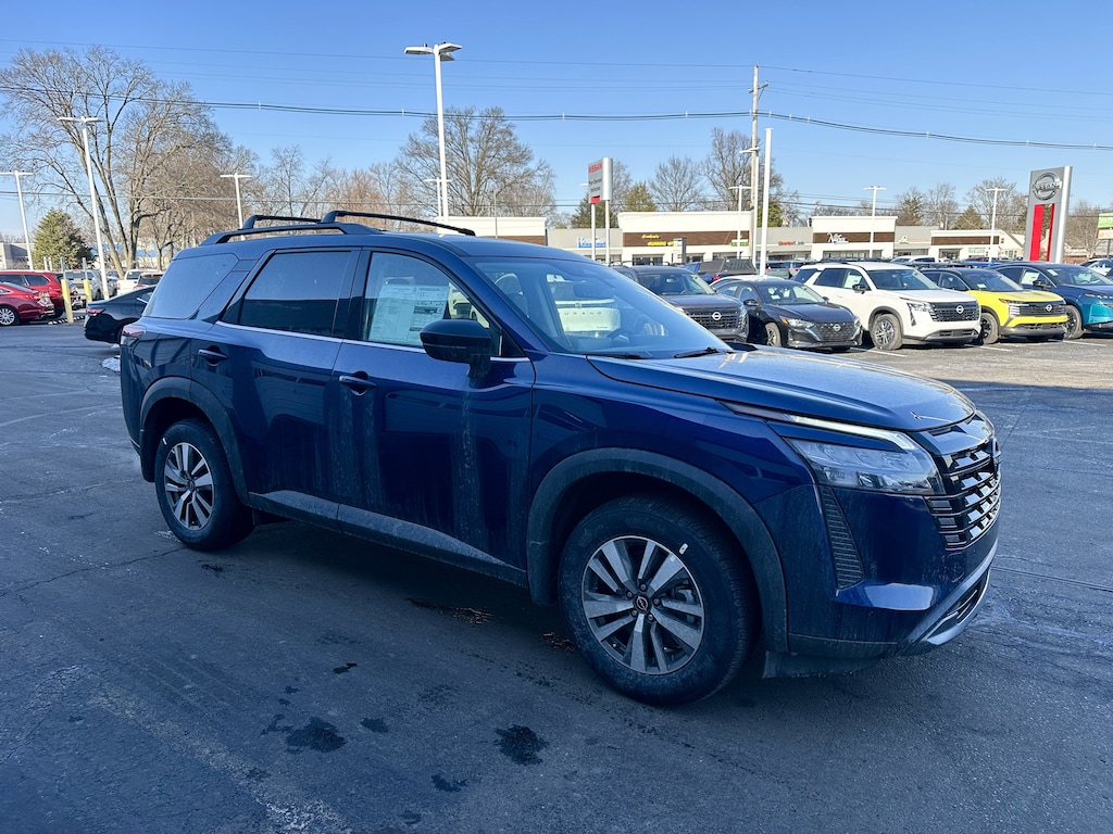 Jeff Wyler Nissan of Louisville is pleased to offer this charming 2026 Nissan Pathfinder SL in Deep Ocean Blue Pearl. Well equipped with: 4WD, 18" Machined Alloy Wheels, 3rd row seats: bench, 4-Piece Black Splash Guards, 4-Wheel Disc Brakes, 6 Speakers, ABS brakes, Air Conditioning, Alloy wheels, AM/FM radio: SiriusXM w/360L, Auto High-beam Headlights, Auto-dimming Rear-View mirror, Automatic temperature control, Bench Seat Carpeted Floor Mats, Brake assist, Bumpers: body-color, Cross Bars, Delay-off headlights, Driver door bin, Driver vanity mirror, Dual front impact airbags, Dual front side impact airbags, Electronic Stability Control, Emergency communication system: NissanConnect Services, Four wheel independent suspension, Front anti-roll bar, Front Bucket Seats, Front Center Armrest, Front dual zone A/C, Front reading lights, Fully automatic headlights, Garage door transmitter: HomeLink, Heated door mirrors, Heated Front Bucket Seats, Heated front seats, Heated steering wheel, Illuminated entry, Knee airbag, Low tire pressure warning, NissanConnect featuring Apple CarPlay and Android Auto, Occupant sensing airbag, Outside temperature display, Overhead airbag, Overhead console, Panic alarm, Passenger door bin, Passenger vanity mirror, Power door mirrors, Power driver seat, Power Liftgate, Power steering, Power windows, Radio data system, Radio: AM/FM Audio System with NissanConnect, Rear air conditioning, Rear anti-roll bar, Rear reading lights, Rear seat center armrest, Rear side impact airbag, Rear window defroster, Rear window wiper, Reclining 3rd row seat, Remote keyless entry, Security system, Speed control, Speed-sensing steering, Split folding rear seat, Spoiler, Steering wheel mounted audio controls, Tachometer, TailorFit Appointed Seating Surfaces, Telescoping steering wheel, Tilt steering wheel, Traction control, Trip computer, Turn signal indicator mirrors, and Variably intermittent wipers.2026 Nissan Pathfinder SL Deep Ocean Blue Pearl Wyler Family First Package Includes: NanoCure Appearance Protection: Exterior & Interior Chemical Sealant Applied to Protect Against Environmental Hazards (7 Year Warranty Coverage). Pulse- Rear end Collision Avoidance System Theft Deterrent Strategy gives you 5 Years of Coverage against vehicle Theft, Offering up to a $5,000 benefit. 4WD. Customer's May Not Qualify for All Rebates. Prices Do Not Include Tax, License. $2000 - Nissan Customer Cash. Exp. 03/02/2026