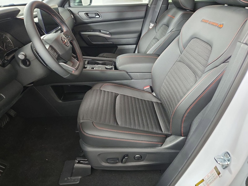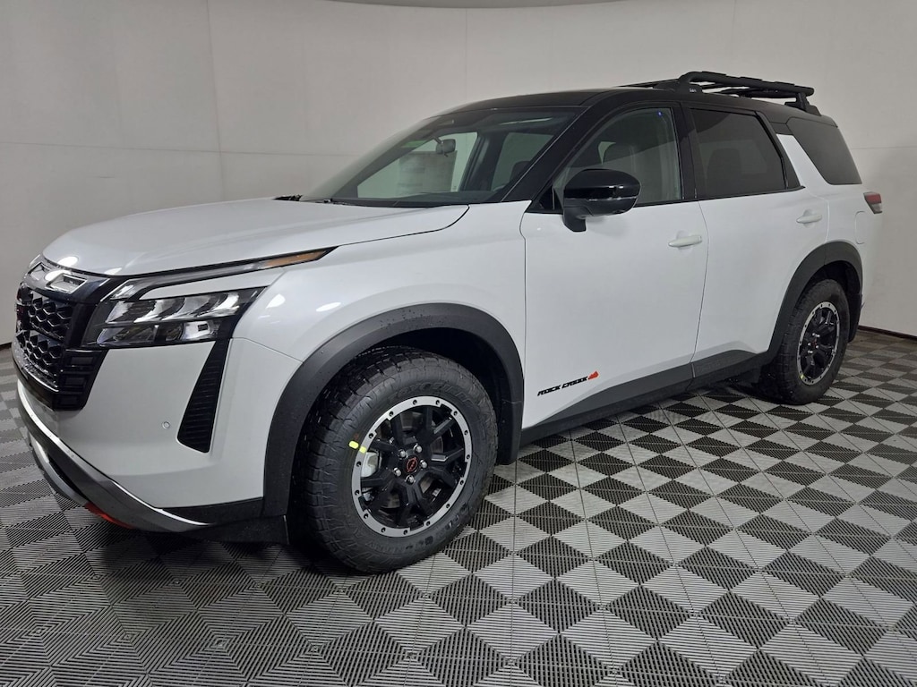 Scores 23 Highway MPG and 20 City MPG! This Nissan Pathfinder delivers a Premium Unleaded V-6 3.5 L/213 engine powering this Automatic transmission. EVEREST WHITE PEARL TRICOAT/SUPER BLACK, CHARCOAL, LEATHERETTE & CLOTH SEATING SURFACES -inc: unique stitching, [P02] ROCK CREEK PREMIUM PACKAGE -inc: 2nd-Row Climate Control Panel, Panoramic Moonroof, 2nd-Row Captain Chairs, Heated Steering Wheel, 2nd-Row Removable Center Console, Wireless Charging, 2 12V Power Outlet in Cargo Area.