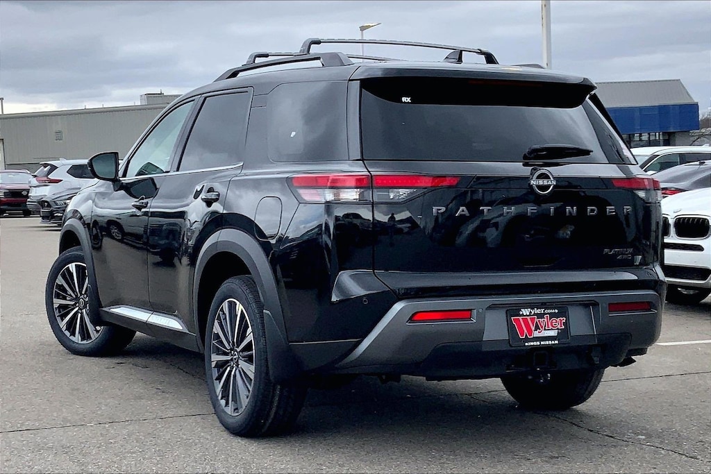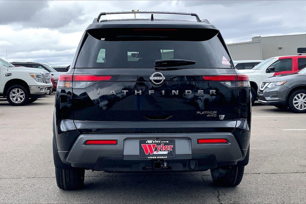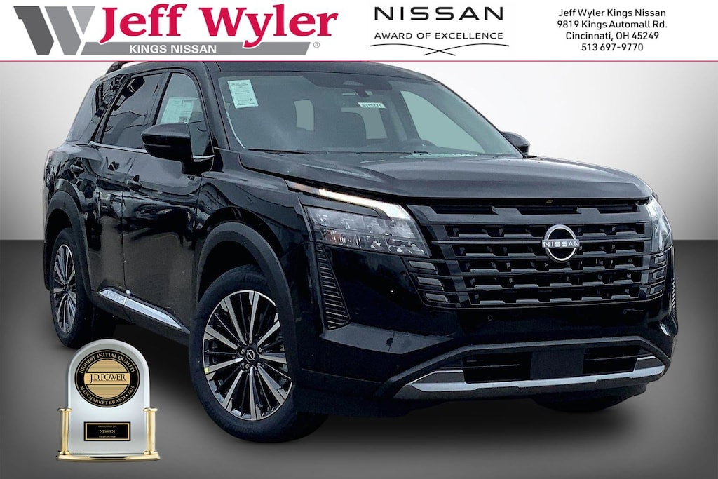 $5,458 off MSRP! Jeff Wyler Kings Nissan is proud to offer this beautiful-looking 2026 Nissan Pathfinder Platinum in Super Black. Well equipped with: Cargo Package (Cargo Area Protector, Cargo Net, and First Aid), 4WD, 13 Speakers, 3rd row seats: bench, 4-Piece Black Splash Guards, 4-Wheel Disc Brakes, ABS brakes, Air Conditioning, Alloy wheels, AM/FM radio: SiriusXM w/360L, Auto High-beam Headlights, Auto tilt-away steering wheel, Auto-dimming Rear-View mirror, Automatic temperature control, Bench Seat Carpeted Floor Mats, Bodyside moldings, Bose Premium Audio System, Brake assist, Bumpers: body-color, Climate Controlled Front Bucket Seats, Cross Bars, Delay-off headlights, Driver door bin, Driver vanity mirror, Dual front impact airbags, Dual front side impact airbags, Electronic Stability Control, Emergency communication system: NissanConnect Services, Four wheel independent suspension, Front anti-roll bar, Front Bucket Seats, Front Center Armrest, Front dual zone A/C, Front reading lights, Fully automatic headlights, Garage door transmitter: HomeLink, Heads-Up Display, Heated door mirrors, Heated front seats, Heated rear seats, Heated steering wheel, Illuminated entry, Knee airbag, Low tire pressure warning, Memory seat, Nissan USB Charging Cable Set, NissanConnect featuring Apple CarPlay and Android Auto, Occupant sensing airbag, Outside temperature display, Overhead airbag, Overhead console, Panic alarm, Passenger door bin, Passenger vanity mirror, Power door mirrors, Power driver seat, Power Liftgate, Power moonroof, Power passenger seat, Power steering, Power windows, Radio data system, Radio: AM/FM Audio System with NissanConnect, Rain sensing wipers, Rear air conditioning, Rear anti-roll bar, Rear reading lights, Rear seat center armrest, Rear side impact airbag, Rear window defroster, Rear window wiper, Reclining 3rd row seat, Remote keyless entry, Security system, Semi-Aniline Leather-Appointed Seating Surfaces, Speed control, Speed-sensing steering, Speed-Sensitive Wipers, Split folding rear seat, Spoiler, Steering wheel memory, Steering wheel mounted audio controls, Tachometer, Telescoping steering wheel, Tilt steering wheel, Traction control, Trip computer, Turn signal indicator mirrors, Variably intermittent wipers, Ventilated front seats, and Wheels: 20" Machined Alloy.Wyler Family First Package Includes: NanoCure Appearance Protection: Exterior & Interior Chemical Sealant Applied to Protect Against Environmental Hazards (7 Year Warranty Coverage). Pulse- Rear end Collision Avoidance System Theft Deterrent Strategy gives you 5 Years of Coverage against vehicle Theft, Offering up to a $5,000 benefit. Used vehicles 10 years of age or newer with less than 100,000 miles are eligible for the Wyler Assurance Program, but eligible vehicles must pass our reconditioning process and multi-point inspection. Provided the vehicle passes inspection, vehicles will be eligible for the 6 month/6,000 mile limited warranty. The 6 month/6,000 mile limited warranty is NOT available on AS-IS vehicles, wholesale vehicles, lease buyback/pass-thru vehicles or un-inspected vehicles. Note that this program can also apply to vehicles where the remaining factory coverage is less than 6 months or 6,000 miles. Please check the Federal Trade Commission (FTC) Buyers guide on the vehicle for full details as to whether or not warranty coverage may apply. Contact Dealer for additional details. The Wyler Assurance 6 month/6,000 Mile limited warranty ends 6 months from the date of the Retail Purchase Agreement (BUYERS ORDER) or when the vehicle's odometer registers 6,000 additional miles to the mileage listed on the BUYERS ORDER, whichever comes first. Your Deductible - The warranty holder on your contract pays the first $100 of each covered repair. Price includes: $2000 - Nissan Customer Cash. Exp. 03/31/2026