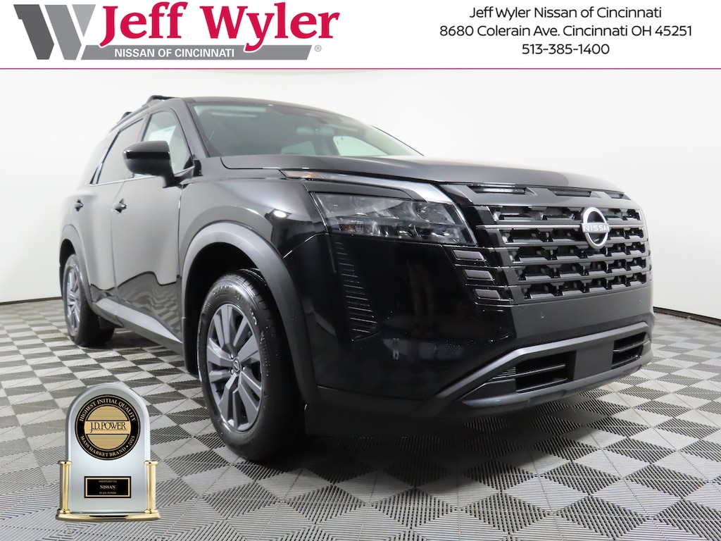 $4,855 off MSRP! Priced below KBB Fair Purchase Price! Super Black 2026 Nissan Pathfinder SV 4WD 9-Speed Automatic Jeff Wyler Nissan of Cincinnati is pumped up to offer this fantastic-looking 2026 Nissan Pathfinder SV in Super Black. Well equipped with: 4WD, 18" Painted Alloy Wheels, 3rd row seats: bench, 4-Piece Black Splash Guards, 4-Wheel Disc Brakes, 6 Speakers, ABS brakes, Air Conditioning, Alloy wheels, AM/FM radio: SiriusXM w/360L, Auto High-beam Headlights, Automatic temperature control, Bench Seat Carpeted Floor Mats, Brake assist, Bumpers: body-color, Cloth Seating Surfaces, Cross Bars, Delay-off headlights, Driver door bin, Driver vanity mirror, Dual front impact airbags, Dual front side impact airbags, Electronic Stability Control, Emergency communication system: NissanConnect Services, Four wheel independent suspension, Front anti-roll bar, Front Bucket Seats, Front Center Armrest, Front dual zone A/C, Front reading lights, Fully automatic headlights, Garage door transmitter: myQ Connected Garage, Heated door mirrors, Heated Front Bucket Seats, Heated front seats, Illuminated entry, Knee airbag, Low tire pressure warning, NissanConnect featuring Apple CarPlay and Android Auto, Occupant sensing airbag, Outside temperature display, Overhead airbag, Overhead console, Panic alarm, Passenger door bin, Passenger vanity mirror, Power door mirrors, Power driver seat, Power Liftgate, Power steering, Power windows, Radio data system, Radio: AM/FM Audio System with NissanConnect, Rear air conditioning, Rear anti-roll bar, Rear reading lights, Rear seat center armrest, Rear side impact airbag, Rear window defroster, Rear window wiper, Reclining 3rd row seat, Remote keyless entry, Security system, Speed control, Speed-sensing steering, Split folding rear seat, Spoiler, Steering wheel mounted audio controls, Tachometer, Telescoping steering wheel, Tilt steering wheel, Traction control, Trip computer, and Variably intermittent wipers. 3.5L V6 DOHC 4WD.21/27 City/Highway MPGWyler Family First Package Includes: NanoCure Appearance Protection: Exterior & Interior Chemical Sealant Applied to Protect Against Environmental Hazards (7 Year Warranty Coverage). Pulse- Rear end Collision Avoidance System Theft Deterrent Strategy gives you 5 Years of Coverage against vehicle Theft, Offering up to a $5,000 benefit. Price includes: $2000 - Nissan Customer Cash. Exp. 03/02/2026