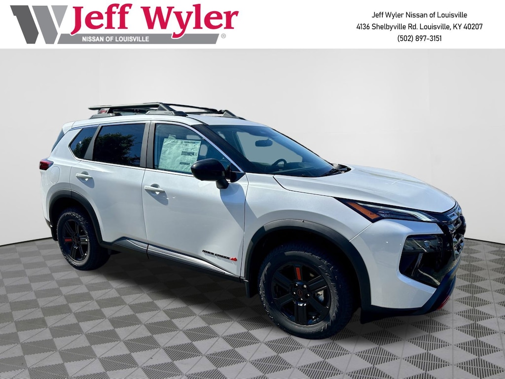 Jeff Wyler Nissan of Louisville is pumped up to offer this fantastic-looking 2026 Nissan Rogue Rock Creek in Everest White Pearl Tricoat. Well equipped with: AWD, 4-Wheel Disc Brakes, 6 Speakers, ABS brakes, Air Conditioning, Alloy wheels, AM/FM radio: Sirius, Apple CarPlay/Android Auto, Auto High-beam Headlights, Automatic temperature control, Black Splash Guards (Set of 4) (B92), Brake assist, Delay-off headlights, Driver door bin, Driver vanity mirror, Dual front impact airbags, Dual front side impact airbags, Electronic Stability Control, Emergency communication system: NissanConnect Services, Four wheel independent suspension, Front anti-roll bar, Front Bucket Seats, Front Center Armrest, Front dual zone A/C, Front reading lights, Fully automatic headlights, Heated door mirrors, Heated Front Bucket Seats, Heated front seats, Illuminated entry, Knee airbag, Leatherette & Ballistic Nylon Seating, Low tire pressure warning, Occupant sensing airbag, Outside temperature display, Overhead airbag, Overhead console, Panic alarm, Passenger door bin, Passenger vanity mirror, Power door mirrors, Power driver seat, Power Liftgate, Power steering, Power windows, Premium Paint, Radio data system, Radio: AM/FM NissanConnect, Rear anti-roll bar, Rear seat center armrest, Rear side impact airbag, Rear window defroster, Rear window wiper, Remote keyless entry, Roof rack, Speed control, Speed-sensing steering, Speed-Sensitive Wipers, Split folding rear seat, Spoiler, Steering wheel mounted audio controls, Tachometer, Telescoping steering wheel, Tilt steering wheel, Traction control, Trip computer, Variably intermittent wipers, and Wheels: 17" Dark Painted Alloy.2026 Nissan Rogue Rock Creek Everest White Pearl Tricoat Wyler Family First Package Includes: NanoCure Appearance Protection: Exterior & Interior Chemical Sealant Applied to Protect Against Environmental Hazards (7 Year Warranty Coverage). Pulse- Rear end Collision Avoidance System Theft Deterrent Strategy gives you 5 Years of Coverage against vehicle Theft, Offering up to a $5,000 benefit. AWD. Customer's May Not Qualify for All Rebates. Prices Do Not Include Tax, License. $1500 - Nissan Customer Cash. Exp. 11/03/2025
