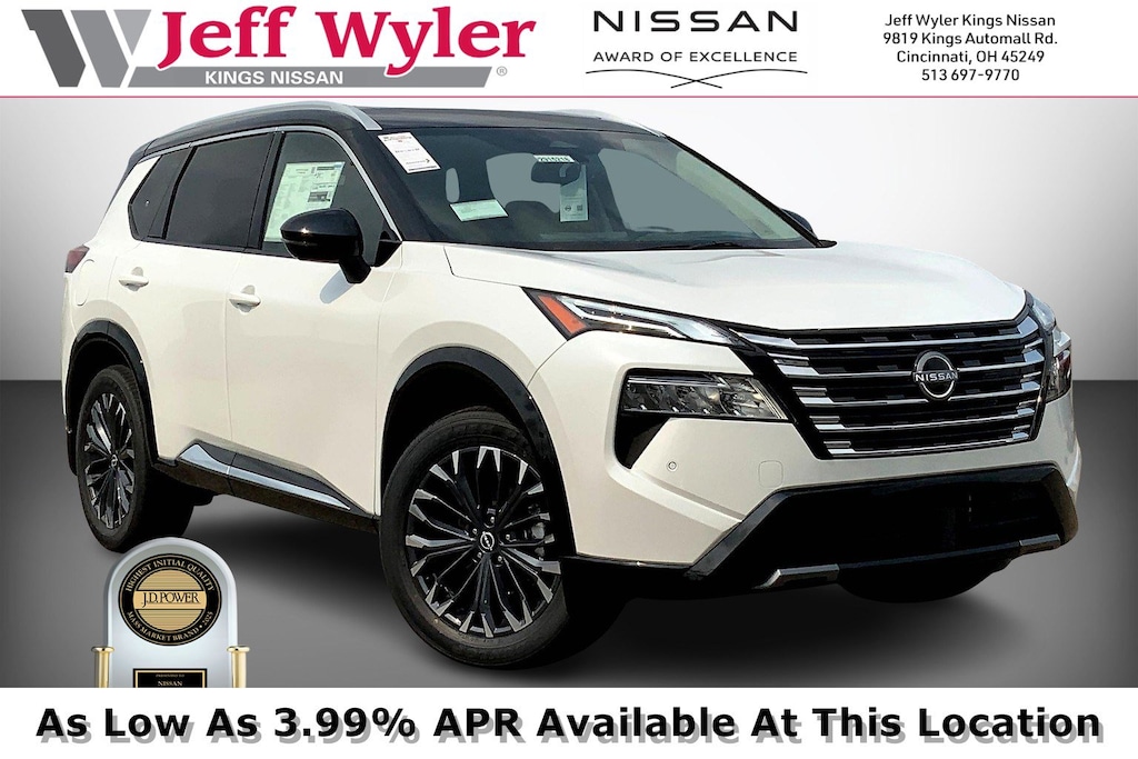 $6,440 off MSRP! Jeff Wyler Kings Nissan is pumped up to offer this wonderful 2026 Nissan Rogue Platinum in Everest White Pearl/Super Black. Well equipped with: Platinum Premium Package (Head-Up Display, Heated Rear Seats, Motion-Activated Power Liftgate, and Tri-Zone Automatic Temperature Control), AWD, 10 Speakers, 4-Wheel Disc Brakes, ABS brakes, Air Conditioning, Alloy wheels, AM/FM radio: SiriusXM w/360L, Auto High-beam Headlights, Auto-dimming Rear-View mirror, Automatic temperature control, Black Splash Guards (set of 4), Bose Premium Audio System, Brake assist, Bumpers: body-color, Chrome Rear Bumper Protector, Delay-off headlights, Driver door bin, Driver vanity mirror, Dual front impact airbags, Dual front side impact airbags, Electronic Stability Control, Emergency communication system: NissanConnect Services, First Aid Kit, Floor Mats with 2-Piece Cargo Area Protector, Four wheel independent suspension, Front anti-roll bar, Front Bucket Seats, Front Center Armrest, Front dual zone A/C, Front reading lights, Fully automatic headlights, Garage door transmitter: myQ Connected Garage, Heads-Up Display, Heated door mirrors, Heated Front Bucket Seats, Heated front seats, Heated steering wheel, Illuminated entry, Illuminated Kick Plates, Knee airbag, Low tire pressure warning, Memory seat, Navigation system: Google Maps, Occupant sensing airbag, Outside temperature display, Overhead airbag, Overhead console, Panic alarm, Passenger door bin, Passenger vanity mirror, Power door mirrors, Power driver seat, Power Liftgate, Power moonroof, Power passenger seat, Power steering, Power windows, Premium Paint with Two-Tone, Quilted Semi-Aniline Leather-Appointed Seat Trim, Radio data system, Radio: AM/FM NissanConnect with Navigation, Rear anti-roll bar, Rear reading lights, Rear seat center armrest, Rear side impact airbag, Rear window defroster, Rear window wiper, Remote keyless entry, Retractable Cargo Cover, Security system, Speed control, Speed-sensing steering, Speed-Sensitive Wipers, Split folding rear seat, Spoiler, Steering wheel mounted audio controls, Tachometer, Telescoping steering wheel, Tilt steering wheel, Traction control, Trip computer, Turn signal indicator mirrors, Variably intermittent wipers, Wheels: 19" Unique Dark Painted Aluminum Alloy, and Wireless Apple CarPlay/Wireless Android Auto. 28/34 City/Highway MPGWyler Family First Package Includes: NanoCure Appearance Protection: Exterior & Interior Chemical Sealant Applied to Protect Against Environmental Hazards (7 Year Warranty Coverage). Pulse- Rear end Collision Avoidance System Theft Deterrent Strategy gives you 5 Years of Coverage against vehicle Theft, Offering up to a $5,000 benefit. Used vehicles 10 years of age or newer with less than 100,000 miles are eligible for the Wyler Assurance Program, but eligible vehicles must pass our reconditioning process and multi-point inspection. Provided the vehicle passes inspection, vehicles will be eligible for the 6 month/6,000 mile limited warranty. The 6 month/6,000 mile limited warranty is NOT available on AS-IS vehicles, wholesale vehicles, lease buyback/pass-thru vehicles or un-inspected vehicles. Note that this program can also apply to vehicles where the remaining factory coverage is less than 6 months or 6,000 miles. Please check the Federal Trade Commission (FTC) Buyers guide on the vehicle for full details as to whether or not warranty coverage may apply. Contact Dealer for additional details. The Wyler Assurance 6 month/6,000 Mile limited warranty ends 6 months from the date of the Retail Purchase Agreement (BUYERS ORDER) or when the vehicle's odometer registers 6,000 additional miles to the mileage listed on the BUYERS ORDER, whichever comes first. Your Deductible - The warranty holder on your contract pays the first $100 of each covered repair. Price includes: $2500 - Nissan Customer Cash. Exp. 01/05/2026 $500 - Nissan MY26 Rogue and Murano Customer Cash. Exp. 01/05/2026