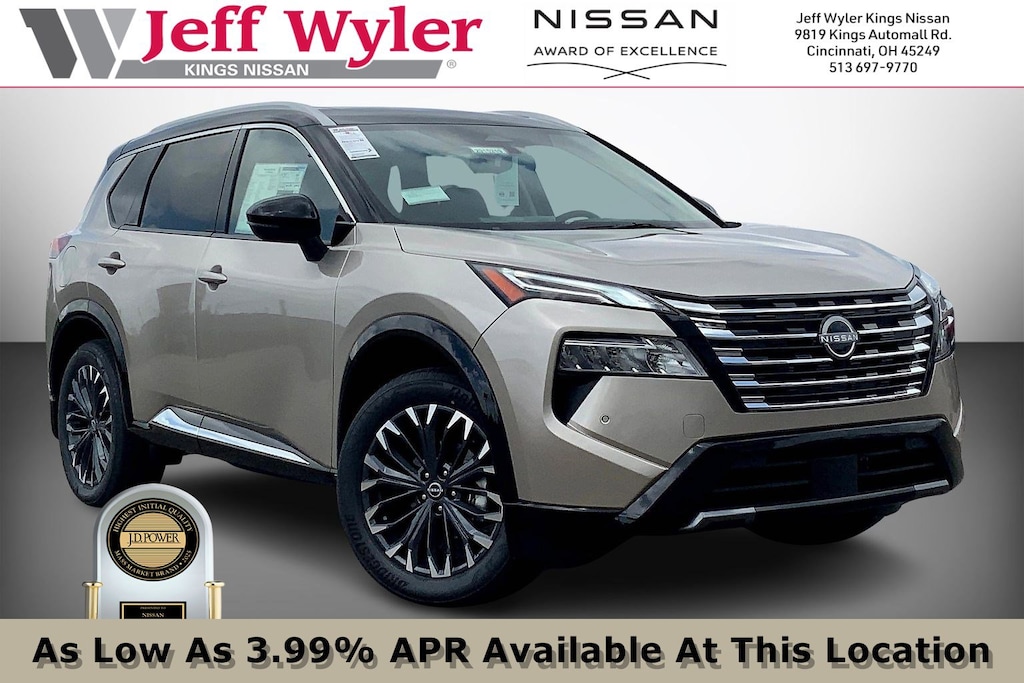 $5,953 off MSRP! Jeff Wyler Kings Nissan is pumped up to offer this attractive 2026 Nissan Rogue Platinum in Champagne Silver Metallic. Well equipped with: Platinum Premium Package (Head-Up Display, Heated Rear Seats, Motion-Activated Power Liftgate, and Tri-Zone Automatic Temperature Control), AWD, 10 Speakers, 4-Wheel Disc Brakes, ABS brakes, Air Conditioning, Alloy wheels, AM/FM radio: SiriusXM w/360L, Auto High-beam Headlights, Auto-dimming Rear-View mirror, Automatic temperature control, Black Splash Guards (set of 4), Bose Premium Audio System, Brake assist, Bumpers: body-color, Chrome Rear Bumper Protector, Delay-off headlights, Driver door bin, Driver vanity mirror, Dual front impact airbags, Dual front side impact airbags, Electronic Stability Control, Emergency communication system: NissanConnect Services, First Aid Kit, Floor Mats with 2-Piece Cargo Area Protector, Four wheel independent suspension, Front anti-roll bar, Front Bucket Seats, Front Center Armrest, Front dual zone A/C, Front reading lights, Fully automatic headlights, Garage door transmitter: myQ Connected Garage, Heads-Up Display, Heated door mirrors, Heated Front Bucket Seats, Heated front seats, Heated steering wheel, Illuminated entry, Illuminated Kick Plates, Knee airbag, Low tire pressure warning, Memory seat, Navigation system: Google Maps, Occupant sensing airbag, Outside temperature display, Overhead airbag, Overhead console, Panic alarm, Passenger door bin, Passenger vanity mirror, Power door mirrors, Power driver seat, Power Liftgate, Power moonroof, Power passenger seat, Power steering, Power windows, Quilted Semi-Aniline Leather-Appointed Seat Trim, Radio data system, Radio: AM/FM NissanConnect with Navigation, Rear anti-roll bar, Rear reading lights, Rear seat center armrest, Rear side impact airbag, Rear window defroster, Rear window wiper, Remote keyless entry, Retractable Cargo Cover, Security system, Speed control, Speed-sensing steering, Speed-Sensitive Wipers, Split folding rear seat, Spoiler, Steering wheel mounted audio controls, Tachometer, Telescoping steering wheel, Tilt steering wheel, Traction control, Trip computer, Turn signal indicator mirrors, Variably intermittent wipers, Wheels: 19" Unique Dark Painted Aluminum Alloy, and Wireless Apple CarPlay/Wireless Android Auto. 28/34 City/Highway MPGWyler Family First Package Includes: NanoCure Appearance Protection: Exterior & Interior Chemical Sealant Applied to Protect Against Environmental Hazards (7 Year Warranty Coverage). Pulse- Rear end Collision Avoidance System Theft Deterrent Strategy gives you 5 Years of Coverage against vehicle Theft, Offering up to a $5,000 benefit. Used vehicles 10 years of age or newer with less than 100,000 miles are eligible for the Wyler Assurance Program, but eligible vehicles must pass our reconditioning process and multi-point inspection. Provided the vehicle passes inspection, vehicles will be eligible for the 6 month/6,000 mile limited warranty. The 6 month/6,000 mile limited warranty is NOT available on AS-IS vehicles, wholesale vehicles, lease buyback/pass-thru vehicles or un-inspected vehicles. Note that this program can also apply to vehicles where the remaining factory coverage is less than 6 months or 6,000 miles. Please check the Federal Trade Commission (FTC) Buyers guide on the vehicle for full details as to whether or not warranty coverage may apply. Contact Dealer for additional details. The Wyler Assurance 6 month/6,000 Mile limited warranty ends 6 months from the date of the Retail Purchase Agreement (BUYERS ORDER) or when the vehicle's odometer registers 6,000 additional miles to the mileage listed on the BUYERS ORDER, whichever comes first. Your Deductible - The warranty holder on your contract pays the first $100 of each covered repair. Price includes: $2500 - Nissan Customer Cash. Exp. 01/05/2026 $500 - Nissan MY26 Rogue and Murano Customer Cash. Exp. 01/05/2026