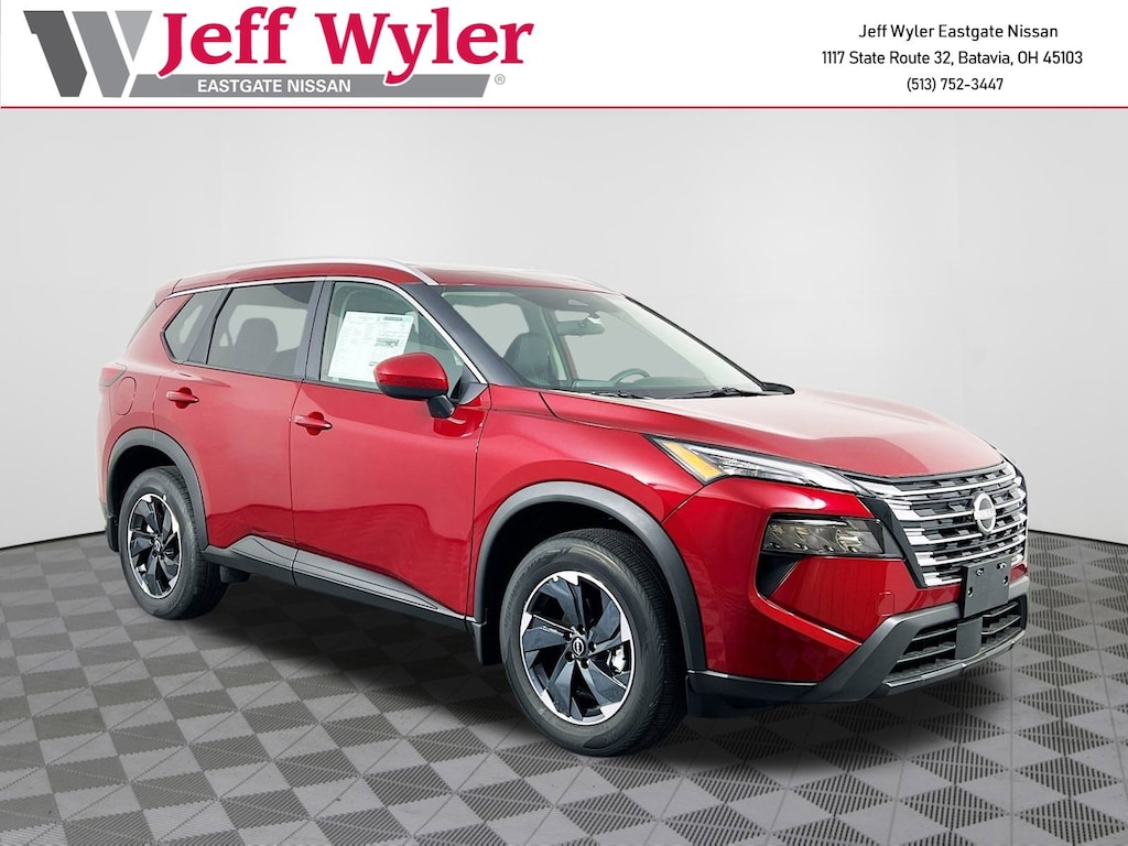 Scarlet Ember Tintcoat 2026 Nissan Rogue SV 1.5L DOHC AWD CVT with Xtronic 28/35 City/Highway MPG Jeff Wyler Eastgate Auto Mall is delighted to offer this attractive 2026 Nissan Rogue SV in Scarlet Ember Tintcoat. Well equipped with: Cold Weather Package (Heated Front Seats and Heated Steering Wheel), SV Premium Package (Leatherette Door Trim Inserts w/Stitch, Panoramic Moonroof, Prima-Tex Leatherette Seat Trim, Rear Door Sunshades, Rear Personal Lights, and Silver Painted Roof Rails), 4-Wheel Disc Brakes, 6 Speakers, ABS brakes, Air Conditioning, Alloy wheels, AM/FM radio: Sirius, Apple CarPlay/Android Auto, Auto High-beam Headlights, Automatic temperature control, Black Splash Guards (Set of 4) (B92), Brake assist, Bumpers: body-color, Chrome Rear Bumper Protector, Cloth Seat Trim w/Patterned Inserts, Delay-off headlights, Driver door bin, Driver vanity mirror, Dual front impact airbags, Dual front side impact airbags, Electronic Stability Control, Emergency communication system: NissanConnect Services, First Aid Kit, Floor Mats w/1-Piece Cargo Area Protector, Four wheel independent suspension, Front anti-roll bar, Front Bucket Seats, Front Center Armrest, Front dual zone A/C, Front reading lights, Fully automatic headlights, Heated door mirrors, Illuminated entry, Knee airbag, Low tire pressure warning, Occupant sensing airbag, Outside temperature display, Overhead airbag, Overhead console, Panic alarm, Passenger door bin, Passenger vanity mirror, Power door mirrors, Power driver seat, Power Liftgate, Power steering, Power windows, Premium Paint, Radio data system, Radio: AM/FM NissanConnect, Rear anti-roll bar, Rear seat center armrest, Rear side impact airbag, Rear window defroster, Rear window wiper, Remote keyless entry, Retractable Cargo Cover, Speed control, Speed-sensing steering, Speed-Sensitive Wipers, Split folding rear seat, Spoiler, Steering wheel mounted audio controls, Tachometer, Telescoping steering wheel, Tilt steering wheel, Traction control, Trip computer, USB Charging Cable Set, Variably intermittent wipers, and Wheels: 18" Dark Painted Machine Finished Alloy. 28/35 City/Highway MPG Price includes: $1000 - Nissan MY26 Rogue (Non-Platinum Trim) Customer Cash. Exp. 12/01/2025 $1500 - Nissan Customer Cash. Exp. 12/01/2025