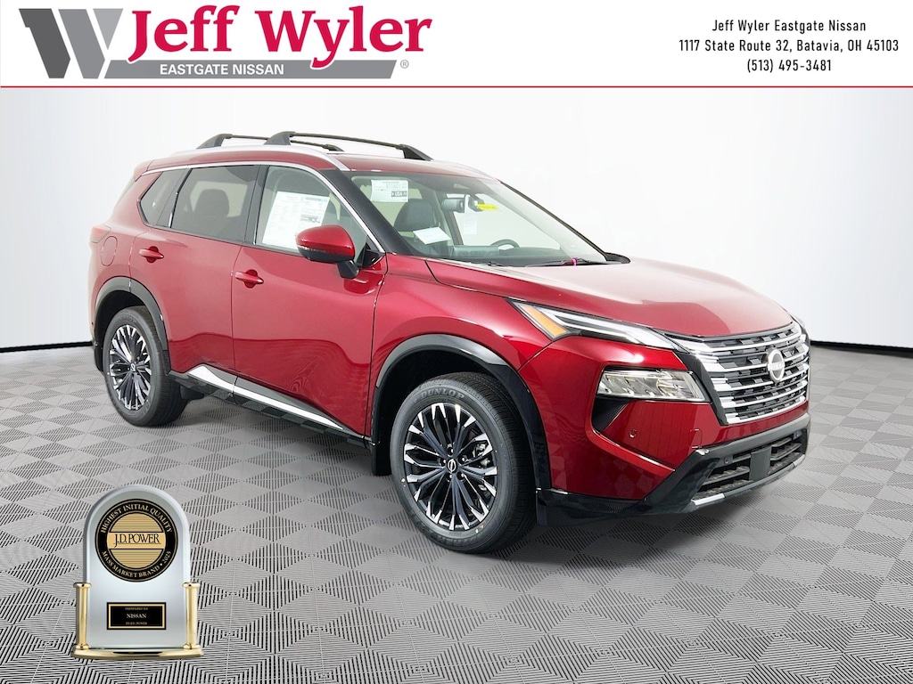 Priced below KBB Fair Purchase Price! Scarlet Ember Tintcoat 2026 Nissan Rogue Platinum 1.5L DOHC AWD CVT with Xtronic 28/35 City/Highway MPG Jeff Wyler Eastgate Auto Mall is proud to offer this gorgeous-looking 2026 Nissan Rogue Platinum in Scarlet Ember Tintcoat. Well equipped with: Platinum Premium Package (Head-Up Display, Heated Rear Seats, Motion-Activated Power Liftgate, and Tri-Zone Automatic Temperature Control), 10 Speakers, 4-Wheel Disc Brakes, ABS brakes, Air Conditioning, Alloy wheels, AM/FM radio: SiriusXM w/360L, Auto High-beam Headlights, Auto-dimming Rear-View mirror, Automatic temperature control, Black Splash Guards (set of 4), Bose Premium Audio System, Brake assist, Bumpers: body-color, Chrome Rear Bumper Protector, Delay-off headlights, Driver door bin, Driver vanity mirror, Dual front impact airbags, Dual front side impact airbags, Electronic Stability Control, Emergency communication system: NissanConnect Services, First Aid Kit, Floor Mats with 2-Piece Cargo Area Protector, Four wheel independent suspension, Front anti-roll bar, Front Bucket Seats, Front Center Armrest, Front dual zone A/C, Front reading lights, Fully automatic headlights, Garage door transmitter: myQ Connected Garage, Heads-Up Display, Heated door mirrors, Heated Front Bucket Seats, Heated front seats, Heated steering wheel, Illuminated entry, Knee airbag, Low tire pressure warning, Memory seat, Navigation system: Google Maps, Occupant sensing airbag, Outside temperature display, Overhead airbag, Overhead console, Panic alarm, Passenger door bin, Passenger vanity mirror, Power door mirrors, Power driver seat, Power Liftgate, Power moonroof, Power passenger seat, Power steering, Power windows, Premium Paint, Quilted Semi-Aniline Leather-Appointed Seat Trim, Radio data system, Radio: AM/FM NissanConnect with Navigation, Rear anti-roll bar, Rear reading lights, Rear seat center armrest, Rear side impact airbag, Rear window defroster, Rear window wiper, Remote keyless entry, Roof Rail Cross Bars, Security system, Speed control, Speed-sensing steering, Speed-Sensitive Wipers, Split folding rear seat, Spoiler, Steering wheel mounted audio controls, Tachometer, Telescoping steering wheel, Tilt steering wheel, Traction control, Trip computer, Turn signal indicator mirrors, Variably intermittent wipers, Wheels: 19" Unique Dark Painted Aluminum Alloy, and Wireless Apple CarPlay/Wireless Android Auto. 28/35 City/Highway MPG Price includes: $2500 - Nissan Customer Cash. Exp. 01/05/2026 $500 - Nissan MY26 Rogue and Murano Customer Cash. Exp. 01/05/2026